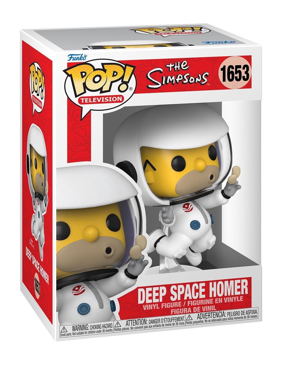 El diseño incluye detalles icónicos como el casco espacial y su traje blanco con insignias, que rememoran su aventura en gravedad cero y su inolvidable escena con las patatas fritas flotantes. Con el número 1653 en la colección Funko Pop! de Los Simpsons, esta figura es un homenaje indispensable para los seguidores de la serie.