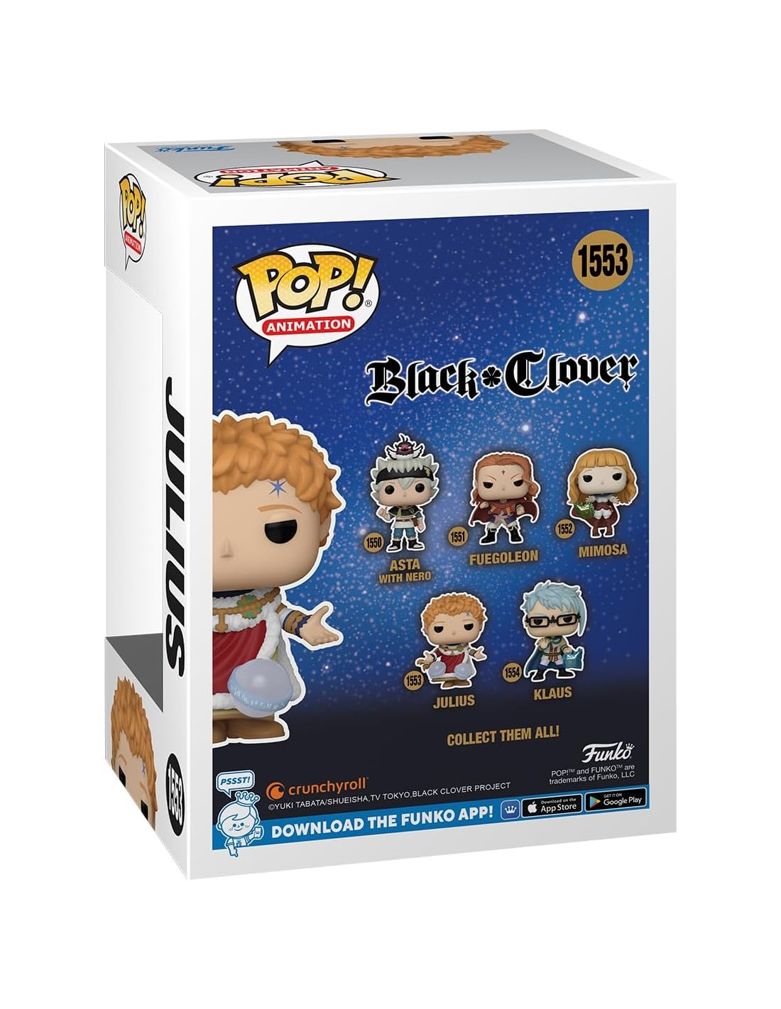 La figura Funko Pop! Animación de Julius Novachrono, inspirada en la exitosa serie Black Clover, representa al poderoso y carismático Rey Mago con un diseño detallado y fiel al personaje. Este modelo captura a Julius en su postura serena pero imponente, reflejando su fascinación por la magia y su papel crucial en la protección del Reino del Trébol.