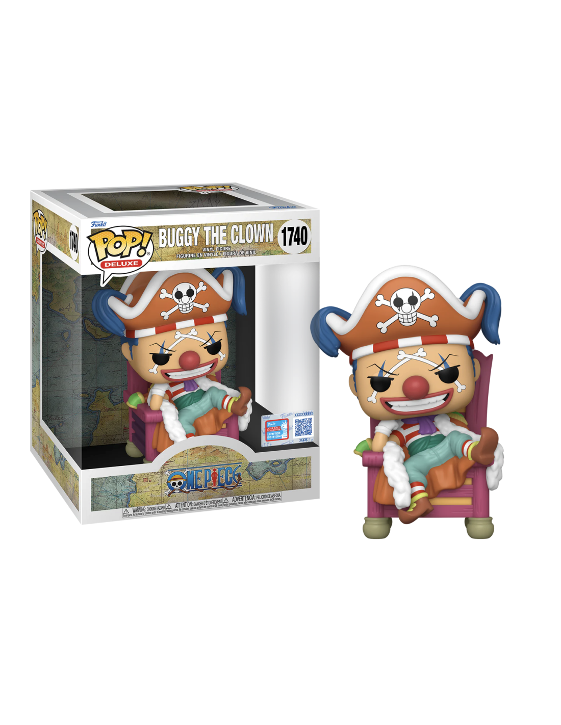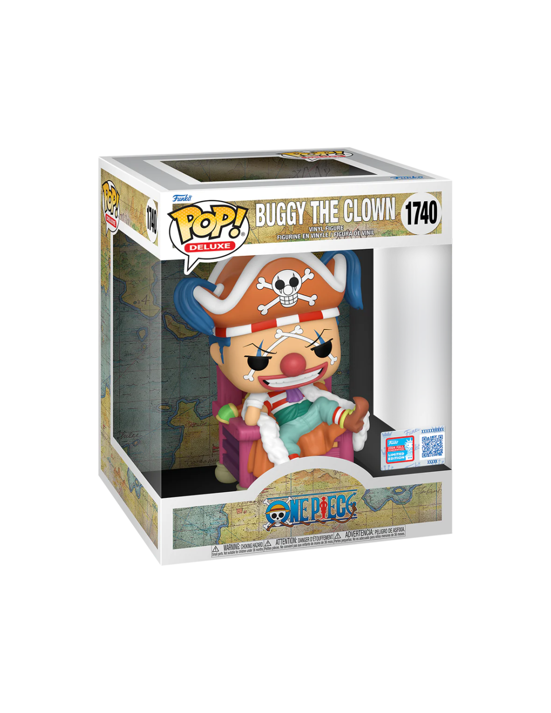 La Figura Funko Pop! Buggy El Payaso, modelo 1740, trae a uno de los villanos más icónicos y extravagantes de One Piece a tu colección. Con su característico maquillaje de payaso, la gran nariz roja y su atuendo colorido de capitán pirata, esta edición limitada de Otoño NY 2024 es un homenaje perfecto a la esencia cómica y peligrosa de este personaje.
