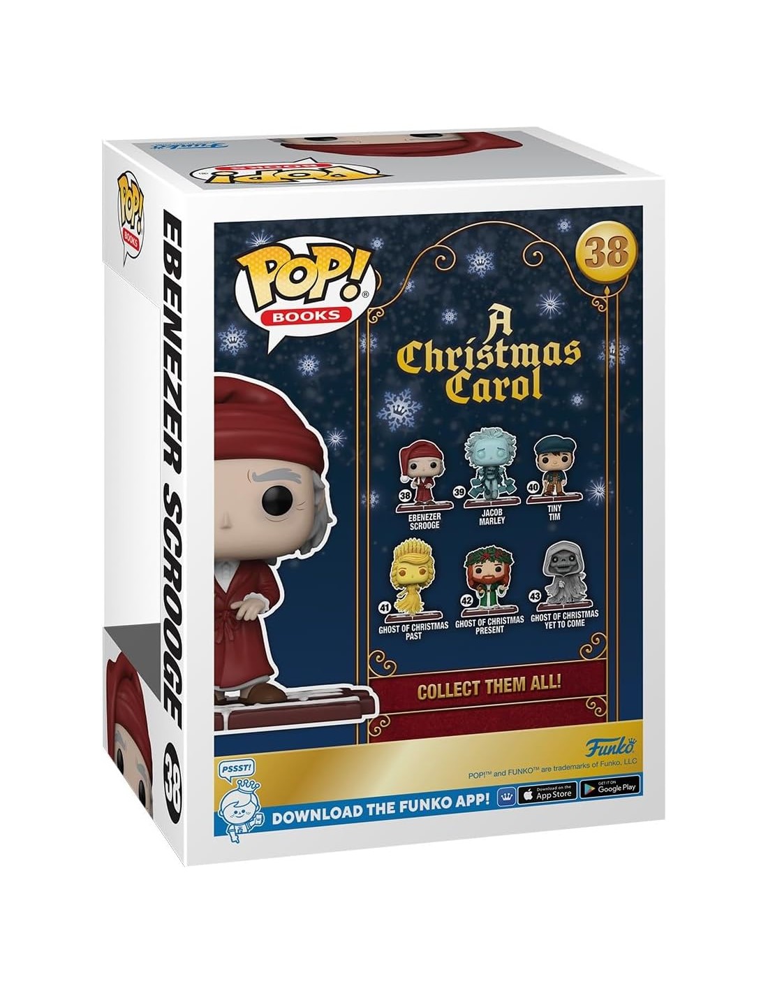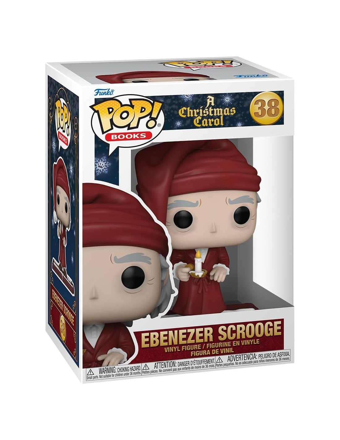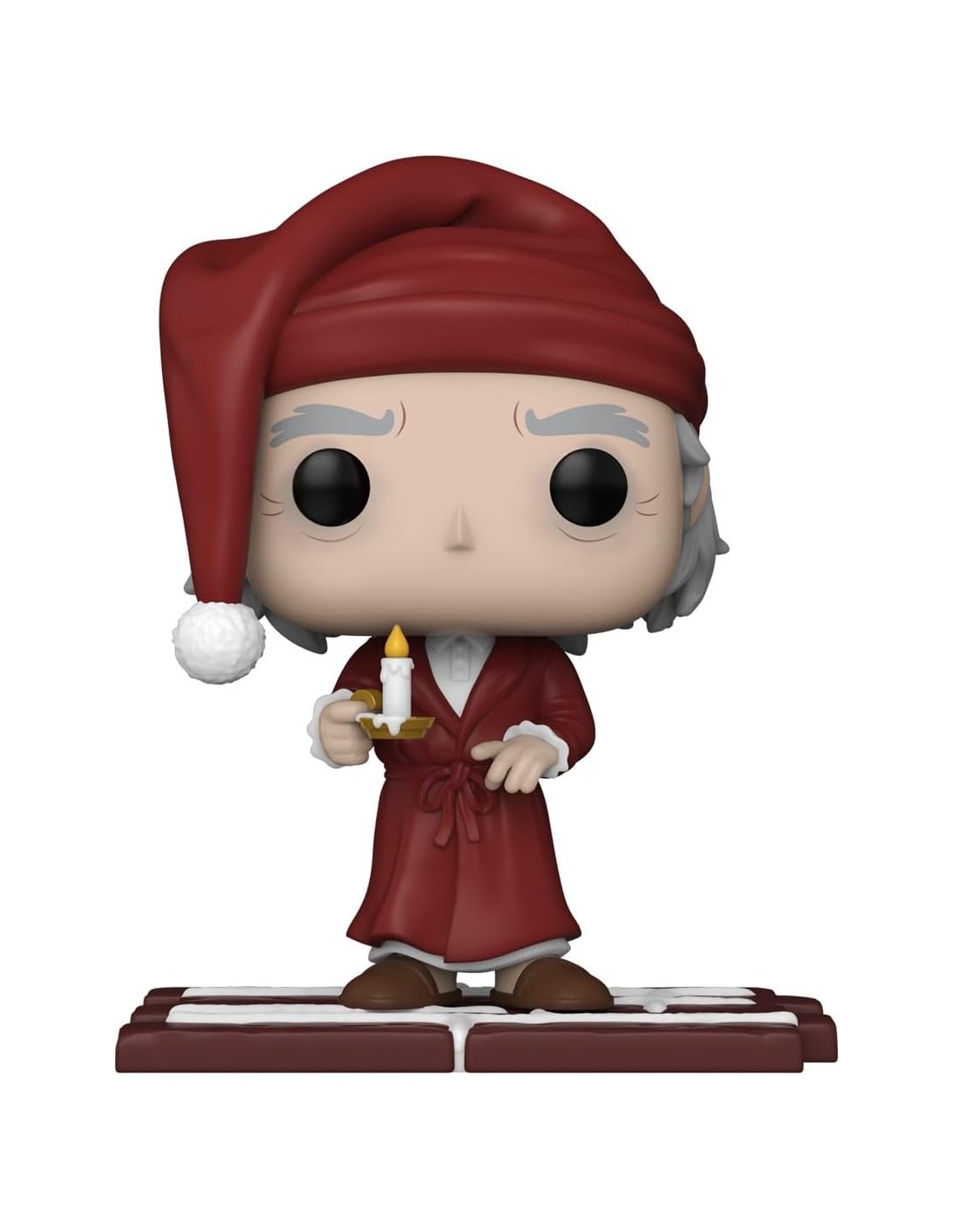 El Funko Pop! de Ebenezer Scrooge de Un Cuento de Navidad refleja con detalle la icónica imagen del avaro protagonista de la clásica historia de Charles Dickens. Vestido con su tradicional bata de dormir, gorro nocturno y una vela en la mano, esta figura captura el momento en el que Scrooge es visitado por los tres fantasmas que cambiarán su vida para siempre.