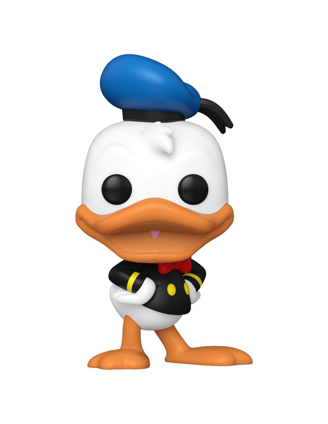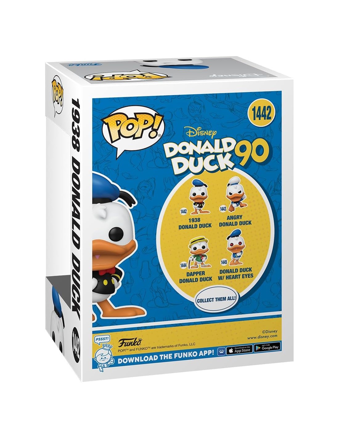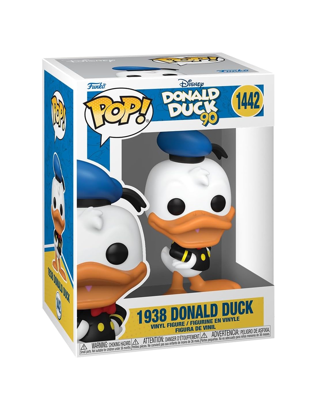 La figura Funko Pop! Disney 1938 Pato Donald Modelo 1442 | 75722 captura a Pato Donald tal y como apareció en sus primeras apariciones de 1938. Con su característico traje de marinero, su pico y su expresiva cara, esta figura refleja el espíritu de uno de los personajes más emblemáticos de Disney. Fabricada en vinilo de alta calidad, la figura destaca por su diseño detallado, que captura la esencia del Donald clásico, mientras mantiene el estilo único de Funko Pop!.