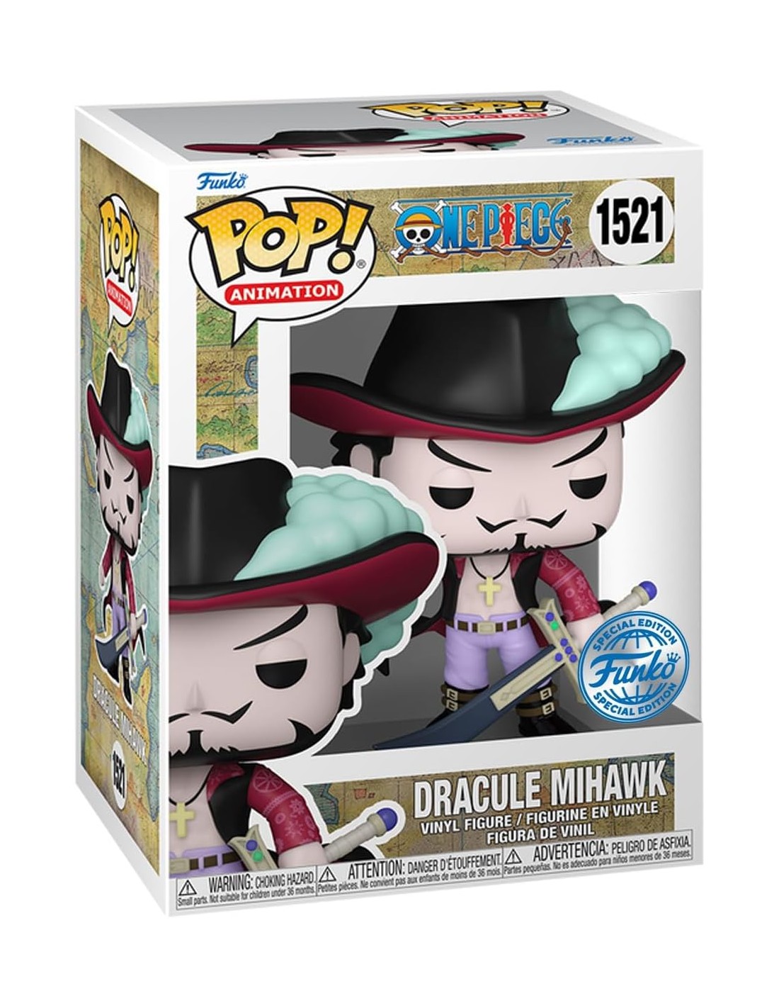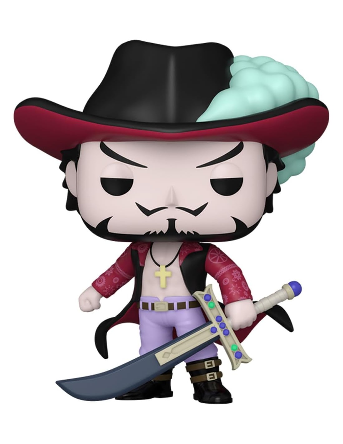 La figura Funko Pop! Animación One Piece Dracule Mihawk Modelo 1521 | 77108 Edición Especial presenta al temido espadachín, Dracule Mihawk, en su pose característica, con su imponente espada "Yoru" y su mirada desafiante. Con su elegante capa y su presencia inconfundible, esta figura captura la esencia de uno de los personajes más poderosos y misteriosos del universo de One Piece. Hecha de vinilo de alta calidad, la figura destaca por su detallado diseño, desde los detalles de su vestimenta hasta la representación fiel de su espadón gigante, lo que la convierte en una pieza imprescindible para los fanáticos de la serie.