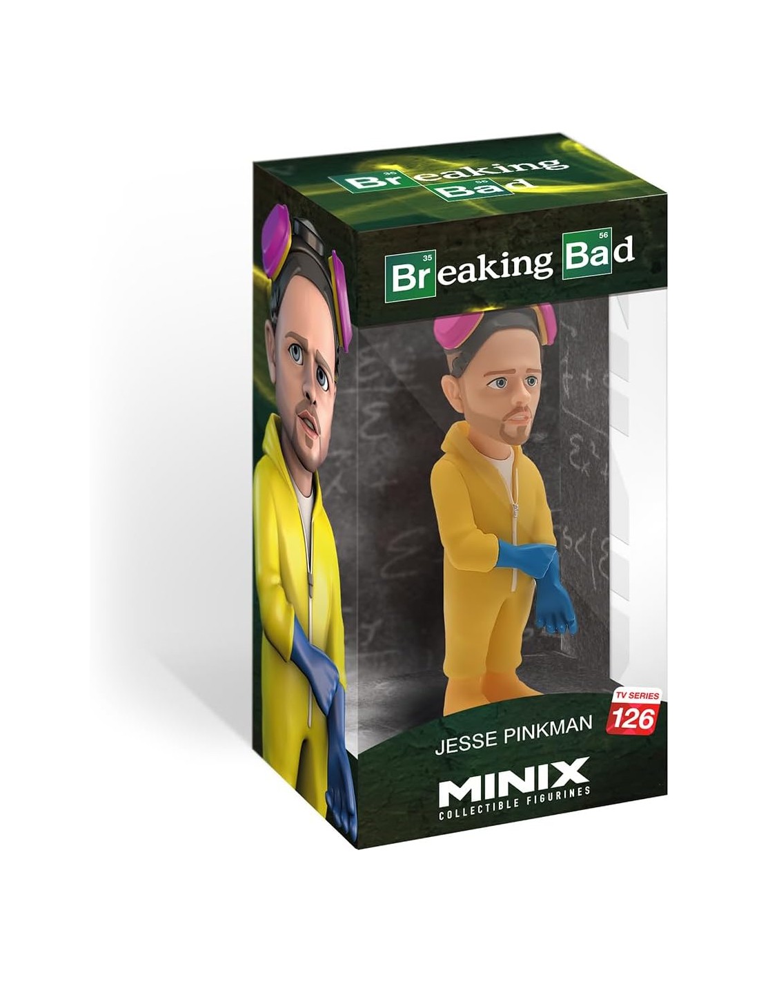 La figura Minix Breaking Bad Jesse Pinkman Modelo 126 retrata al inolvidable personaje de la galardonada serie Breaking Bad. Con 12 cm de altura y fabricada en PVC de alta calidad, esta figura destaca a Jesse en su clásico estilo urbano, completo con sudadera y actitud desafiante. Ideal para fans de la serie y coleccionistas, esta pieza captura la esencia del personaje que definió la lucha entre el bien y el mal en el mundo del narcotráfico ficticio.