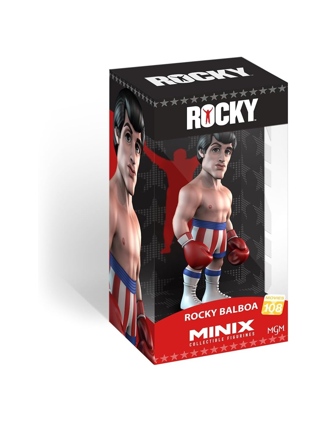 La figura Minix Rocky Balboa Modelo 108 rinde homenaje al legendario boxeador interpretado por Sylvester Stallone. Con 12 cm de altura y fabricada en PVC de alta calidad, esta figura captura a Rocky en una pose heroica, recordando su perseverancia y lucha imparable en la saga de películas. Ideal para los fanáticos del boxeo y el cine de acción, esta pieza se convierte en un tributo perfecto al campeón que nunca se rinde.