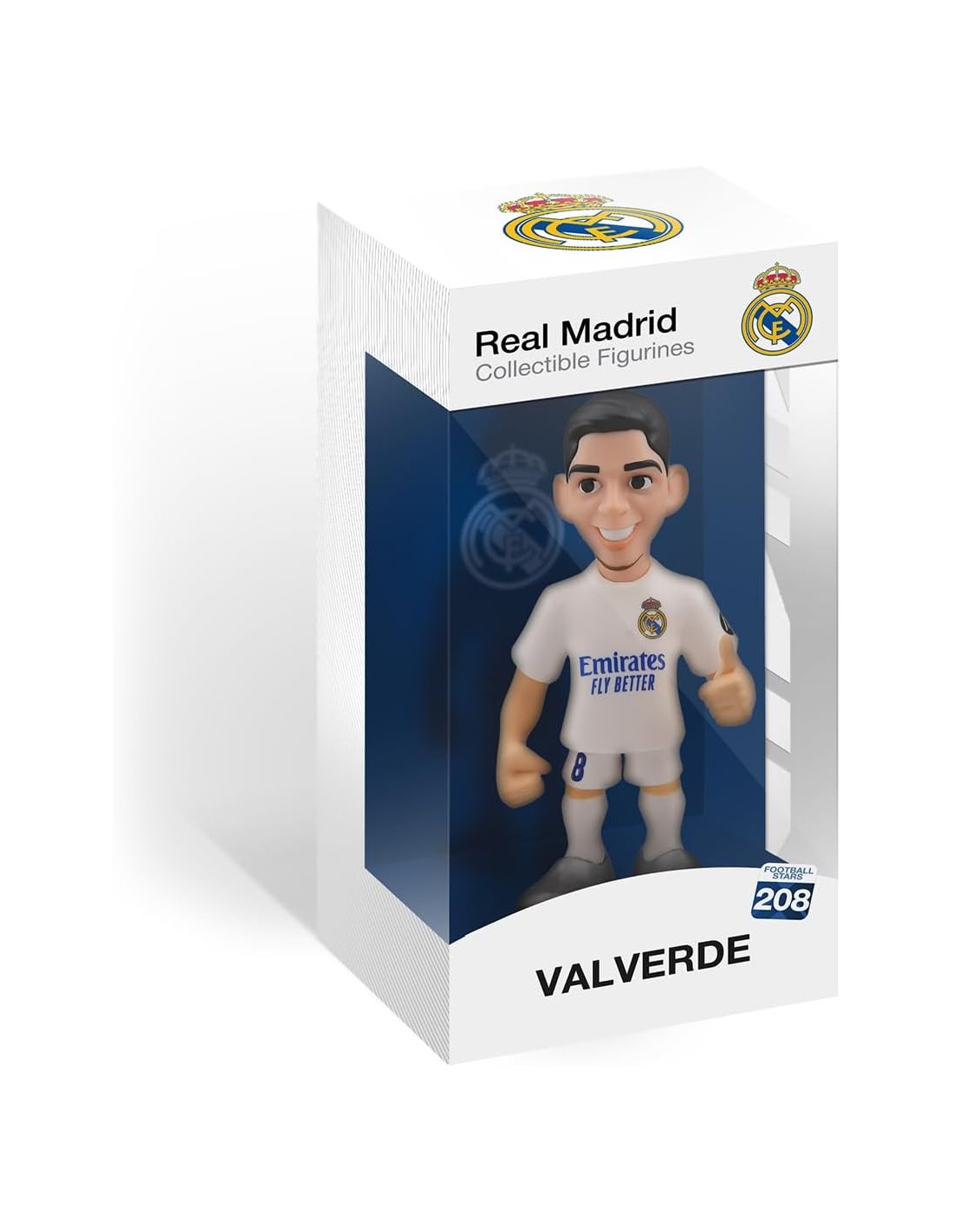 La figura Minix de Fede Valverde, modelo 208, captura a la perfección la esencia del dinámico centrocampista uruguayo. Reconocido por su incansable trabajo en el medio campo y su capacidad para marcar goles decisivos, Valverde se ha consolidado como una de las figuras clave en el Real Madrid. Su habilidad para recorrer el campo, su potencia en los disparos y su versatilidad lo han convertido en un jugador imprescindible en el equipo.