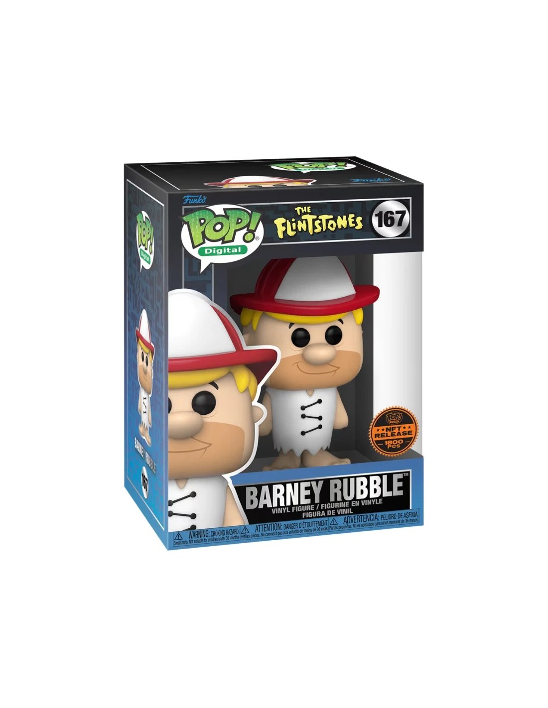 El empaquetado de la edición limitada NFT Digital incluye detalles premium, como el logotipo de "Pop Digital" y un emblema que indica su tirada exclusiva de solo 1800 piezas, lo que aumenta su valor como artículo de colección. Este modelo es perfecto tanto para fanáticos de Los Picapiedras como para coleccionistas de figuras de edición especial.