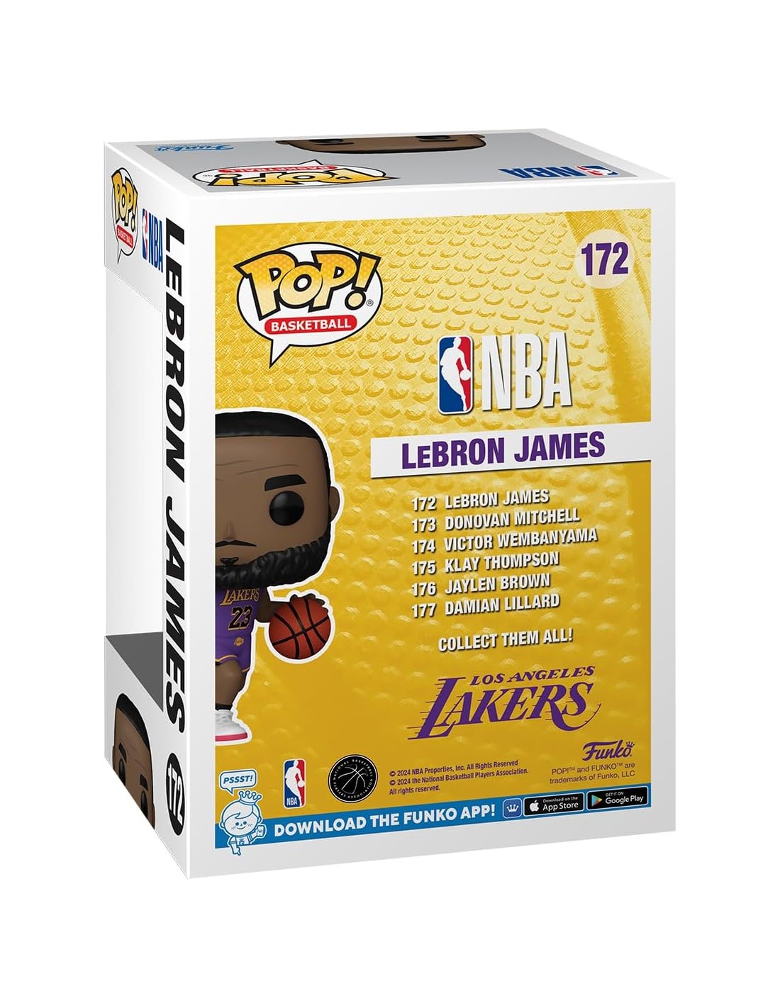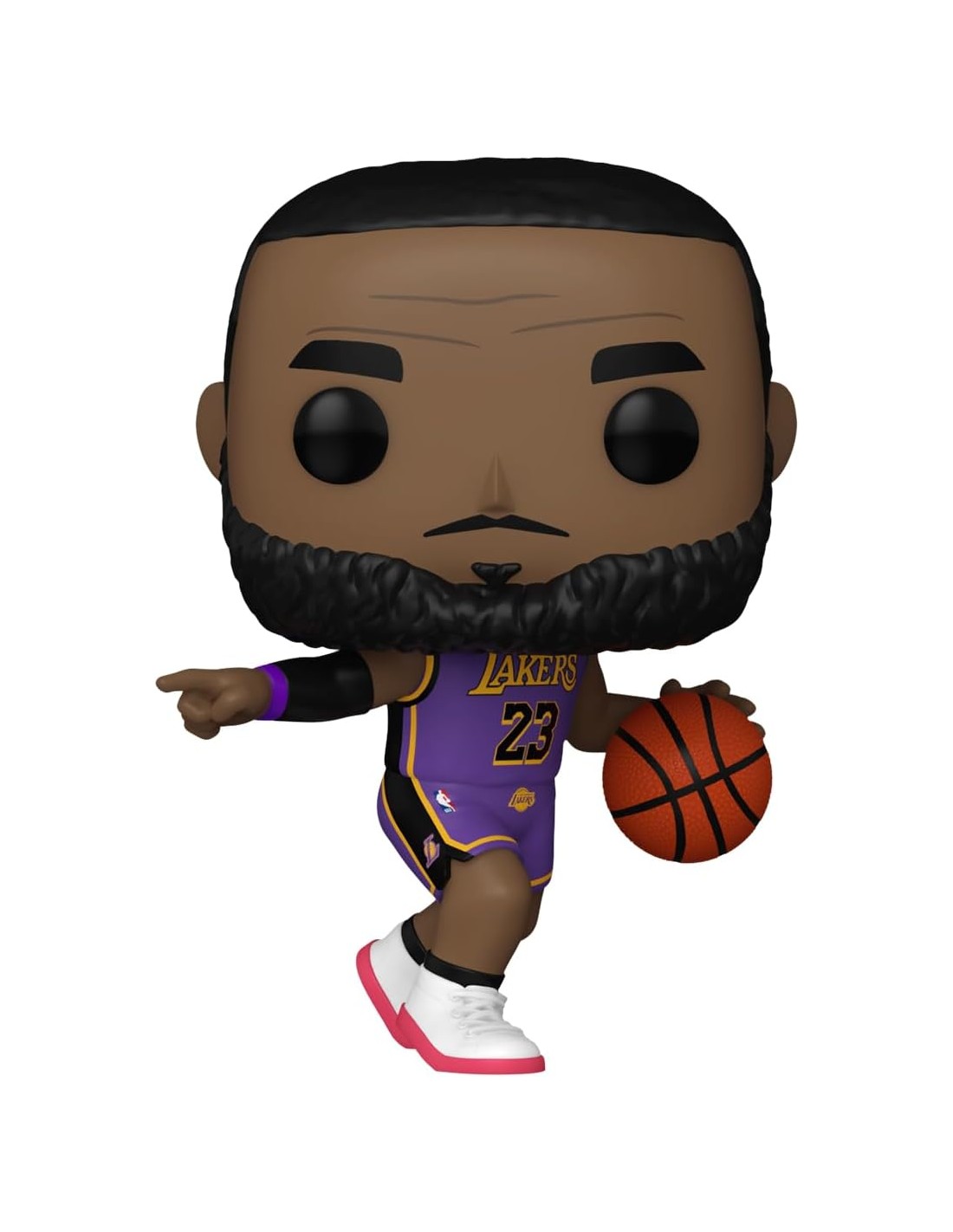 Esta figura Funko Pop! captura la esencia de LeBron James, conocido como "El Rey" de la NBA, durante su etapa con Los Angeles Lakers. Vestido con el uniforme púrpura y dorado característico del equipo, el número 23 y los detalles en el diseño reflejan fielmente su presencia imponente en la cancha. Con su postura de dribleo y el balón en mano, esta figura rinde homenaje a una de las mayores leyendas del baloncesto moderno.