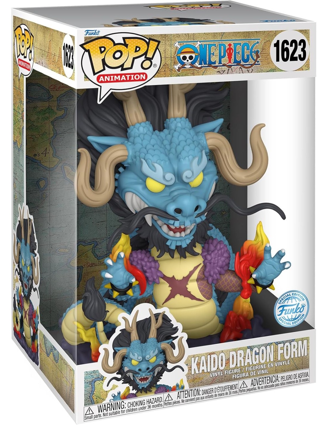 Lleva la grandeza del emperador Kaido a tu colección con esta figura Funko Pop! edición especial, que captura su imponente forma de dragón. Inspirada en la saga de Wano de One Piece, la figura muestra cada detalle característico del poderoso líder de los Piratas de las Bestias, desde su imponente melena negra hasta sus temibles cuernos y escamas de dragón.