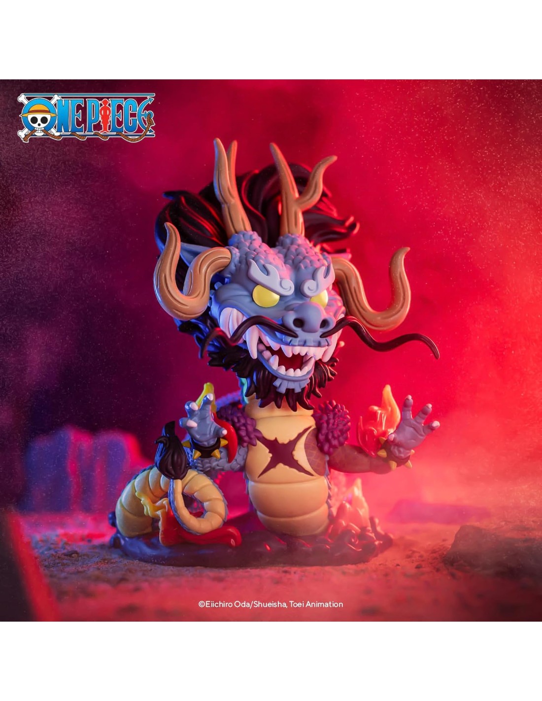 Con una pose agresiva y elementos de fuego rodeando su cuerpo, esta figura representa la fuerza inigualable de Kaido mientras defiende su dominio sobre Wano. Fabricada con materiales de alta calidad y con un diseño fiel al personaje original, es una pieza ideal para los fanáticos del anime y el manga.