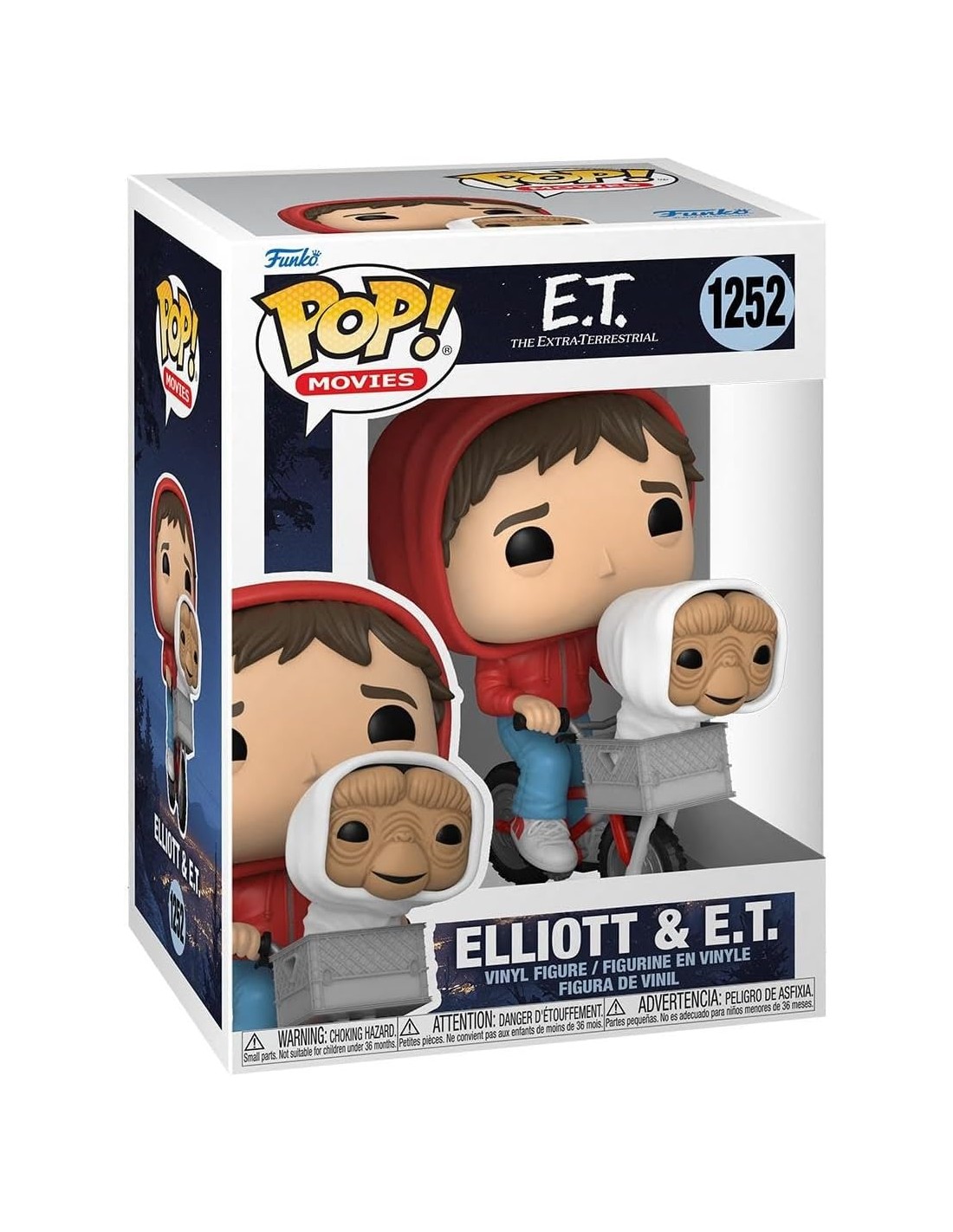Elliot y su inseparable amigo extraterrestre vuelan directo a tu colección con esta figura Funko Pop! inspirada en la inolvidable película E.T. el Extraterrestre. Con un diseño fiel a la escena más recordada del film, esta figura muestra a Elliot con su característica sudadera roja mientras pedalea en su bicicleta, llevando a E.T. envuelto en una manta dentro de la clásica canasta.