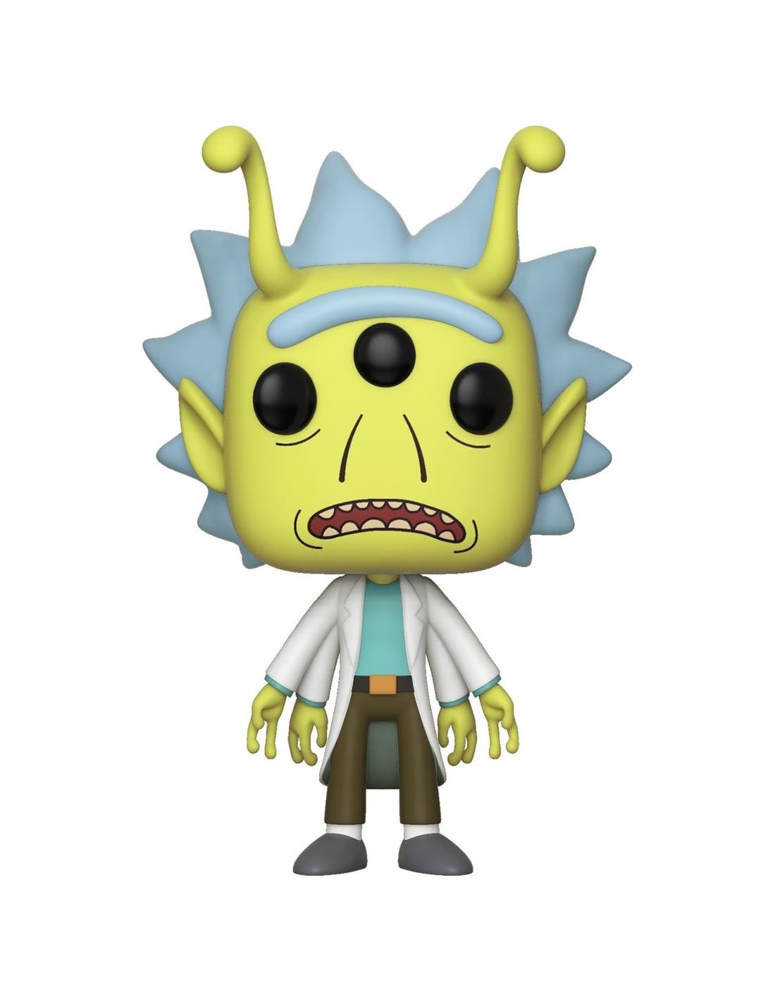 La Figura Funko Pop! Rick & Morty Alien Rick 337 es una representación única de Rick Sánchez en una de sus formas más extrañas. Inspirada en los episodios donde se exploran realidades alternativas, esta figura muestra a Rick con piel verde, tres ojos y antenas, manteniendo su clásico atuendo de bata de laboratorio y pantalón marrón.