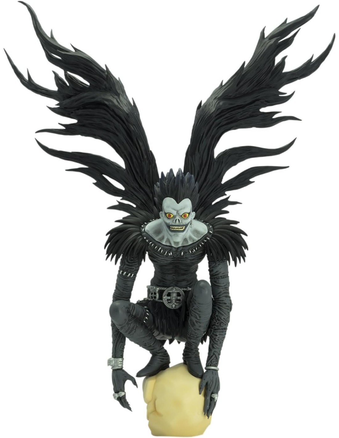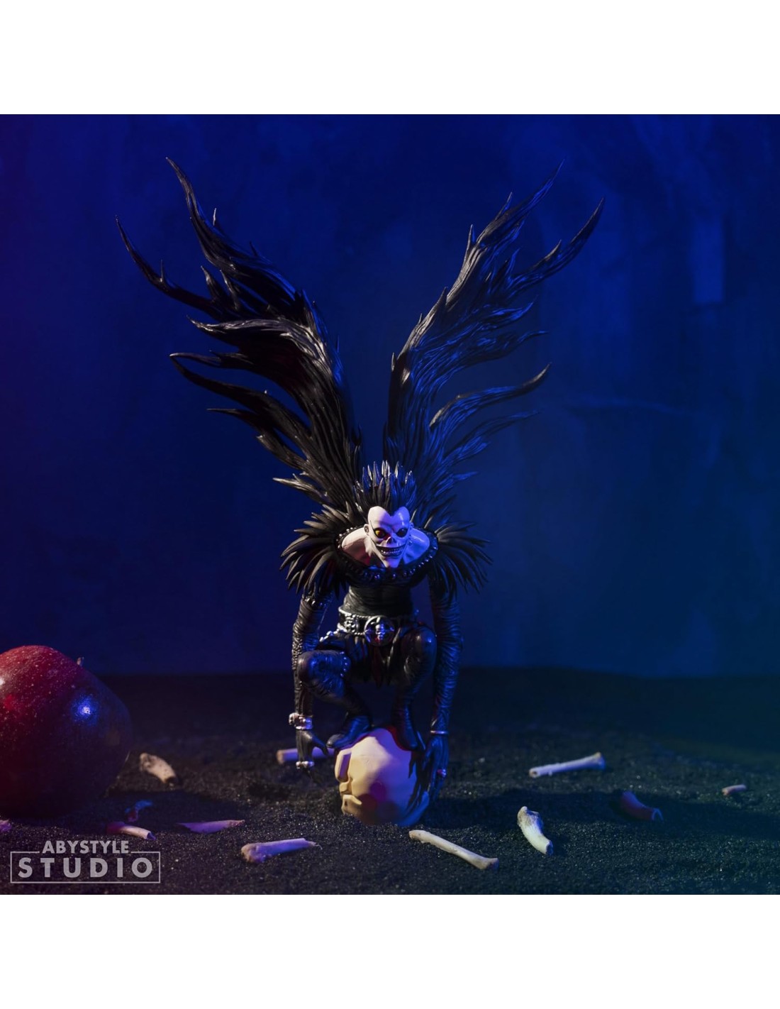 La Figura Abystyle Death Note Modelo Ryuk captura con gran fidelidad la esencia de uno de los personajes más enigmáticos del anime Death Note. Ryuk, el shinigami que desencadena la historia al dejar caer su cuaderno de la muerte en el mundo humano, se presenta en esta figura con una pose agazapada, mirada penetrante y sus alas desplegadas, lo que le otorga una presencia imponente.