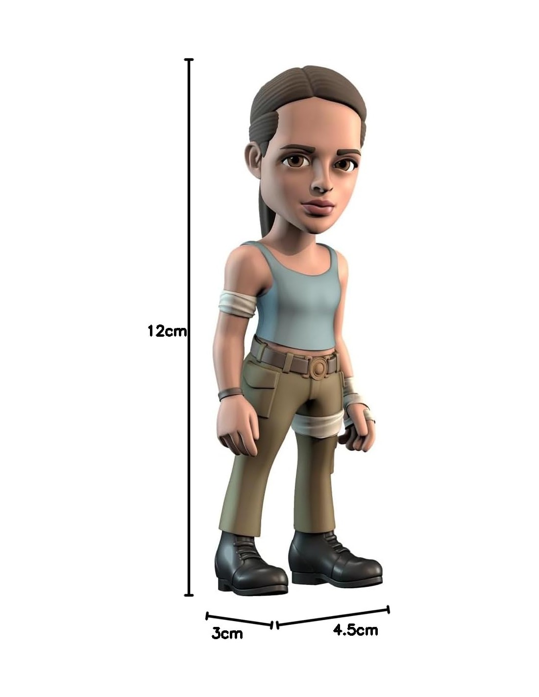 La Figura Minix Tomb Raider Lara Croft Modelo 107 es una representación estilizada de la legendaria heroína de los videojuegos. Con su característico atuendo compuesto por una camiseta azul ajustada, pantalones cargo y botas de combate, esta figura de colección refleja el espíritu aventurero y la determinación de Lara Croft. Sus detalles cuidadosamente diseñados, como las vendas en brazos y piernas, el cinturón táctico y su expresión segura, hacen de esta pieza un imprescindible para los seguidores de la saga.