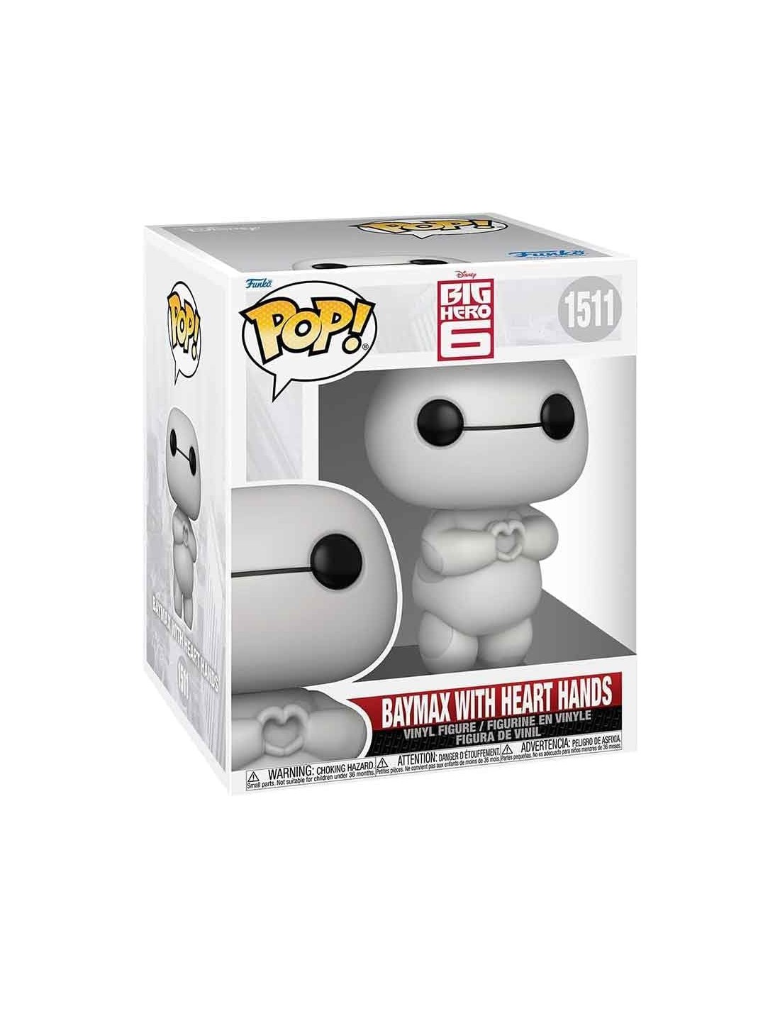 Directo desde San Fransokyo, Baymax, el leal y protector asistente de salud de Big Hero 6, llega en su forma más conmovedora. Esta figura Funko Pop! captura a la perfección su diseño minimalista con su clásica expresión tranquila y su característica pose haciendo un corazón con las manos, simbolizando su cariño y conexión con Hiro y sus amigos.
