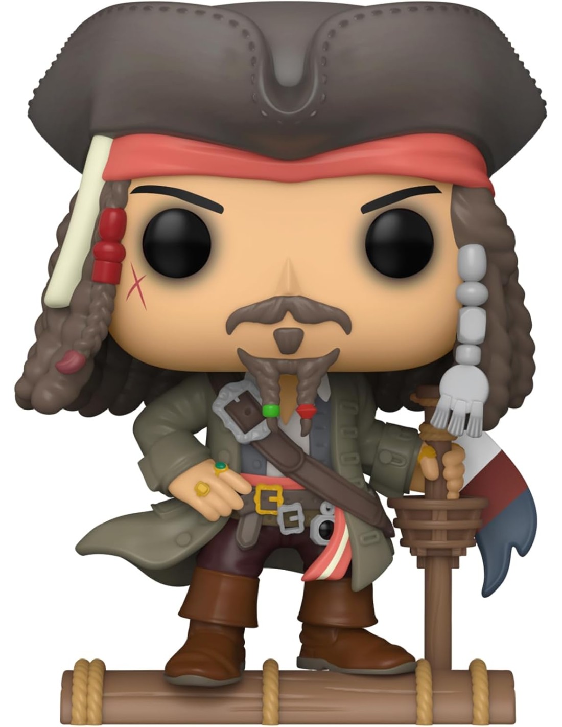 Este Funko muestra a Jack Sparrow sobre una pequeña balsa improvisada, recreando una de sus escenas más memorables de la saga. Sus trenzas adornadas con cuentas, su vestimenta pirata y su característico pañuelo rojo hacen que esta figura sea imprescindible para los fanáticos de Disney y la aventura.