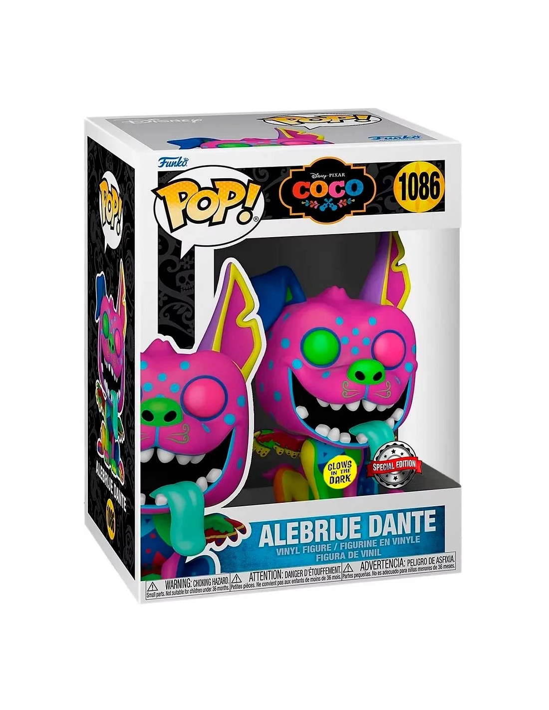 Lo que hace única a esta versión es su efecto brilla en la oscuridad, destacando aún más los colores y realzando su mágica apariencia. Con su expresión juguetona, orejas puntiagudas y alas detalladas, esta figura es imprescindible para los fans de Coco y los coleccionistas de Funko Pop!