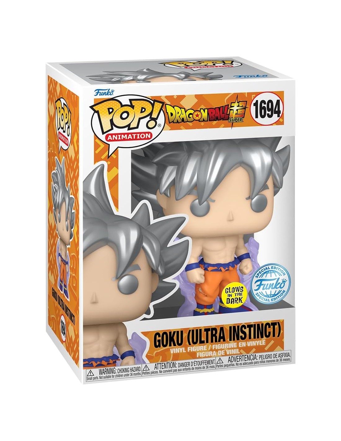 Con su cabello plateado metálico, mirada concentrada y una aura violeta translúcida que brilla en la oscuridad, esta edición especial refleja el instante en que Goku domina el Ultra Instinto. Un imprescindible para los fans que siguen la saga desde sus inicios.