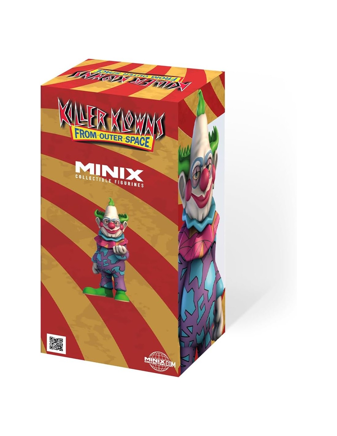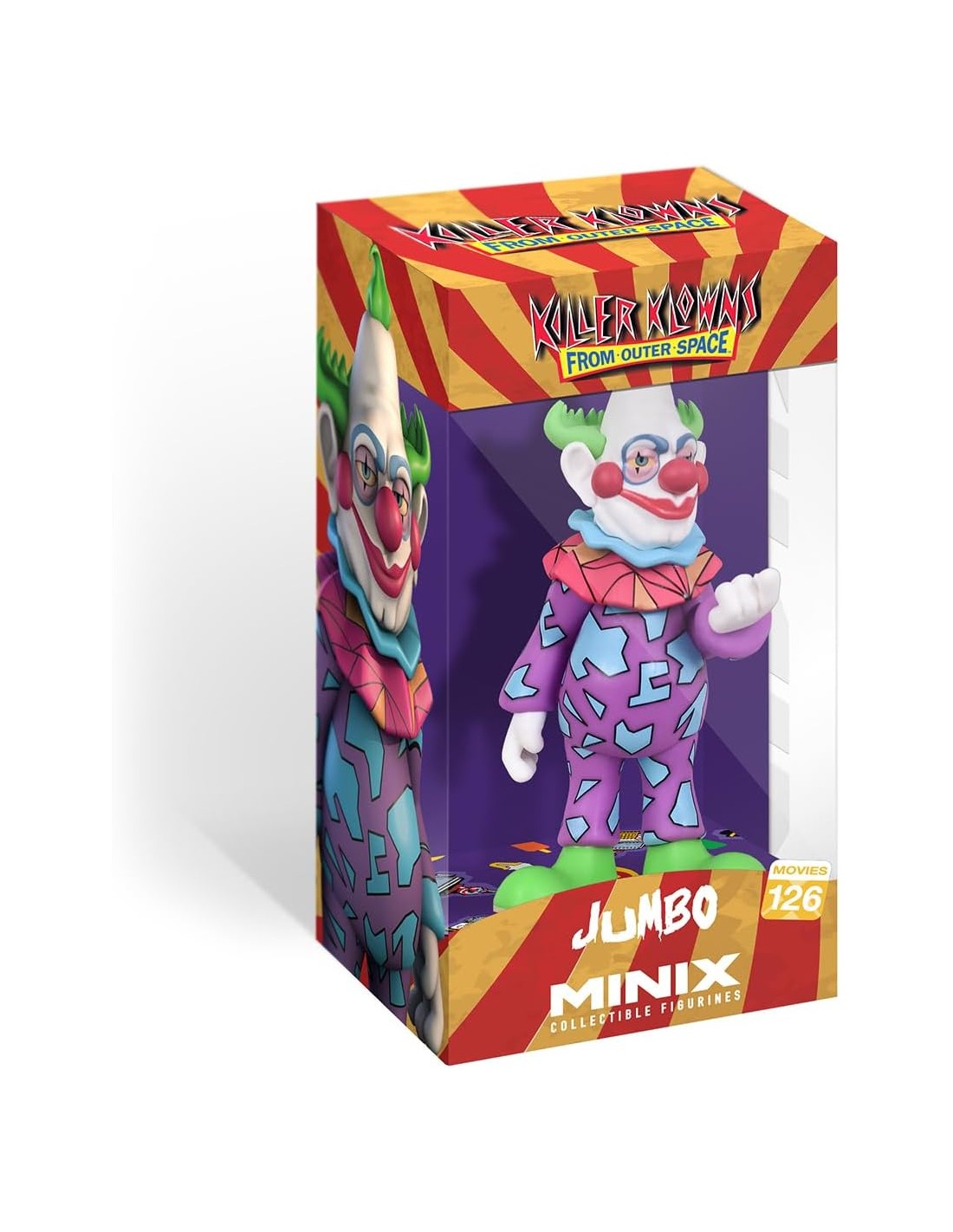 La figura Minix de Jumbo (Modelo 126) trae a la vida al infame payaso alienígena de la icónica película de culto Killer Klowns from Outer Space. Con su llamativo traje de colores, su rizada cabellera verde y su inquietante sonrisa, esta figura captura a la perfección la esencia del payaso más juguetón y macabro del grupo.