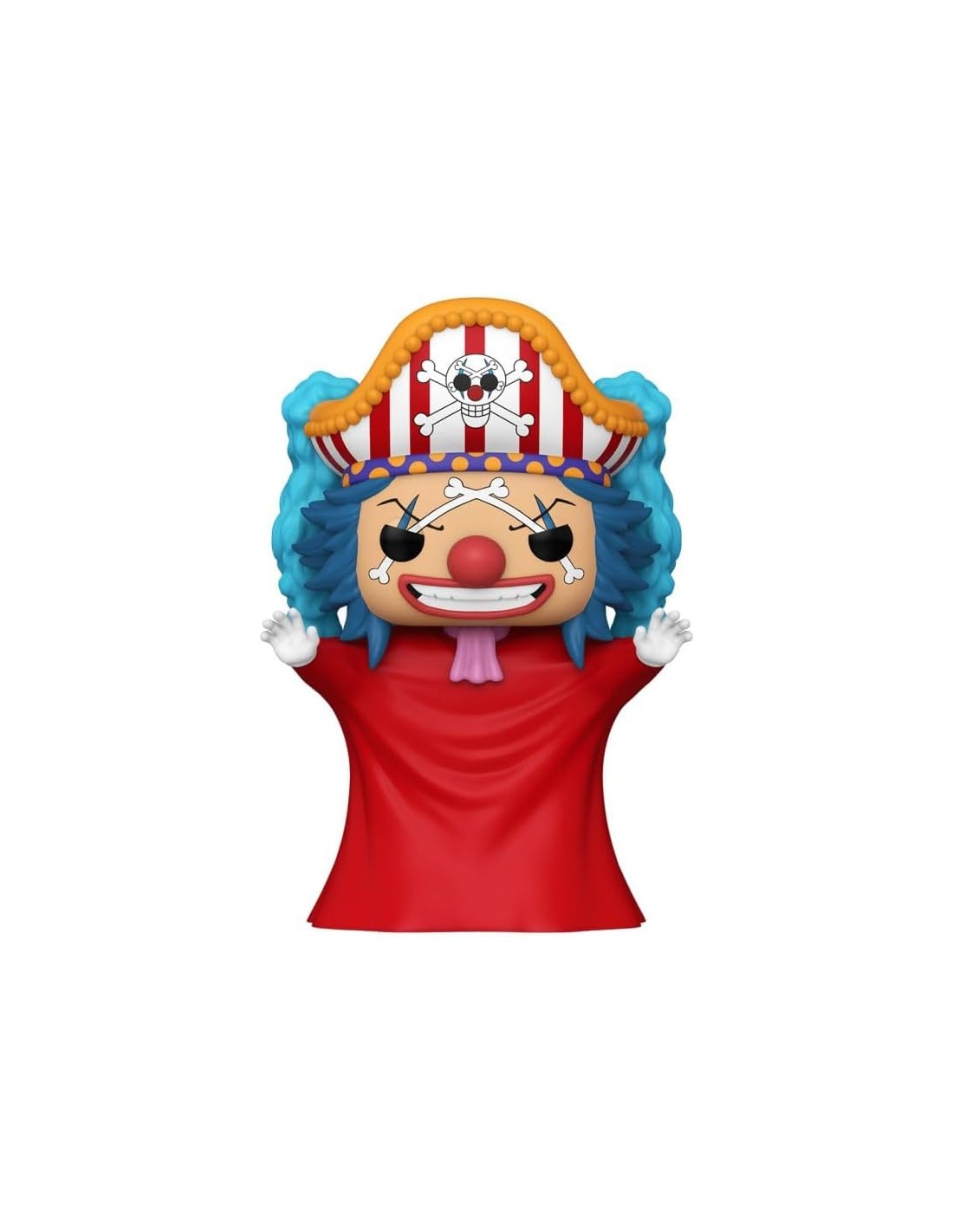 Detalles destacados: Buggy aparece con su característico atuendo de payaso, incluyendo su sombrero con la Jolly Roger y su nariz roja prominente.