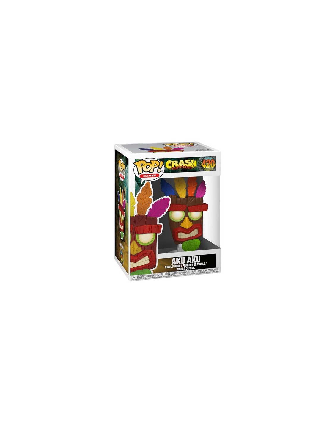Aku Aku, el legendario espíritu protector de Crash Bandicoot, cobra vida en esta figura Funko Pop! llena de color y detalle. Con su característica máscara de madera tallada, plumas vibrantes y su expresión amigable pero poderosa, esta figura es una adición imprescindible para cualquier seguidor de la saga.