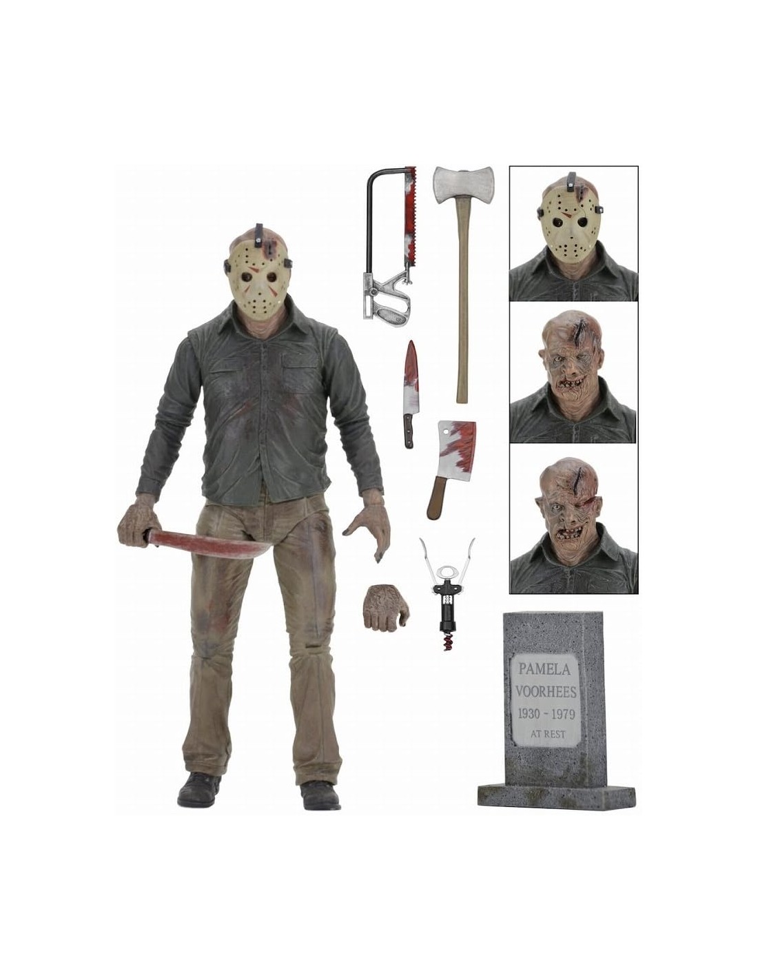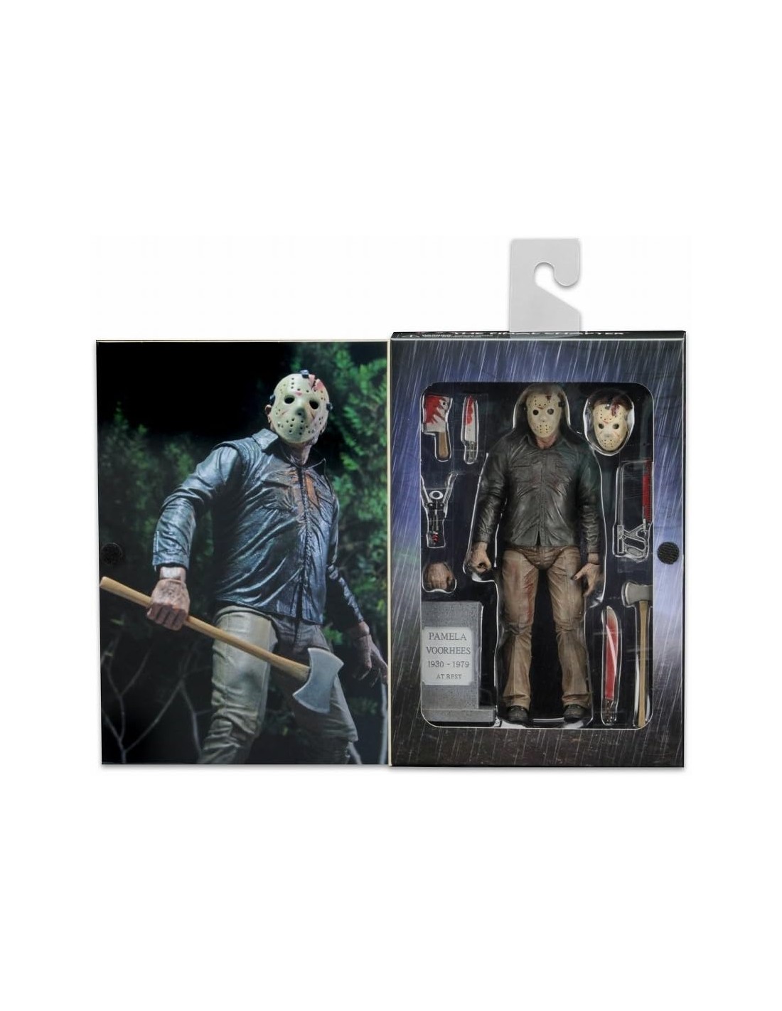 Incluye varias armas, como machetes ensangrentados, hachas y cuchillos, además de manos intercambiables y la lápida de su madre, Pamela Voorhees, para ambientar cualquier escena icónica de la película. Su alto nivel de articulación permite recrear las poses más aterradoras de Jason, convirtiéndola en una pieza imprescindible para los coleccionistas de horror.