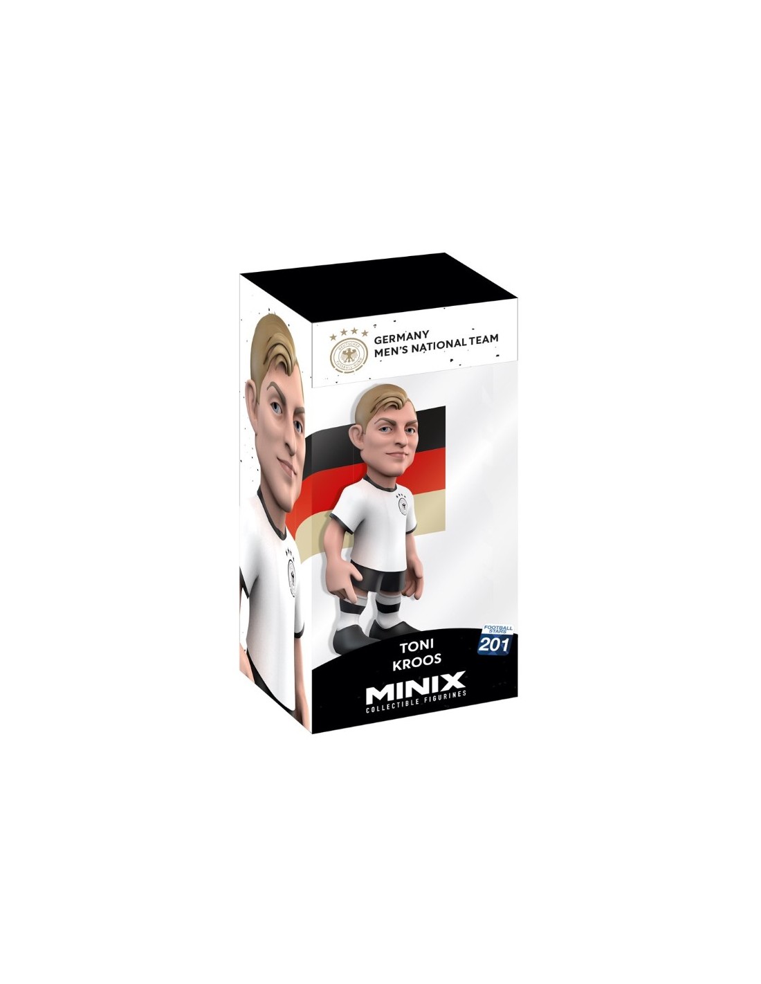 La figura Minix Toni Kroos modelo 201 representa al legendario centrocampista alemán en todo su esplendor, con el uniforme oficial del Real Madrid y su característico estilo sereno pero dominante en el campo. Con una altura aproximada de 12 cm, esta figura coleccionable ofrece un diseño caricaturesco pero detallado, capturando la elegancia y precisión del juego de Kroos.