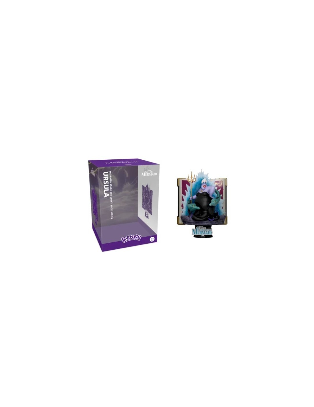 Parte de la prestigiosa serie Story Book Diorama (DS) de Beast Kingdom, la figura combina escultura precisa con un vibrante pintado a mano que resalta los detalles de su malévola expresión y su entorno marino. Con unas dimensiones compactas pero visualmente impactantes, es ideal tanto para vitrinas como para estanterías. La base en forma de libro abierto rinde homenaje al origen literario de los cuentos de hadas, convirtiéndola en una pieza imprescindible para coleccionistas y fans de Disney.