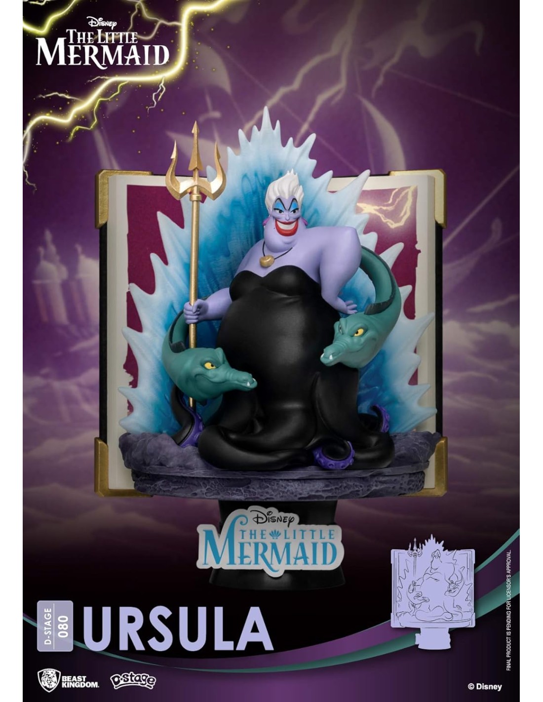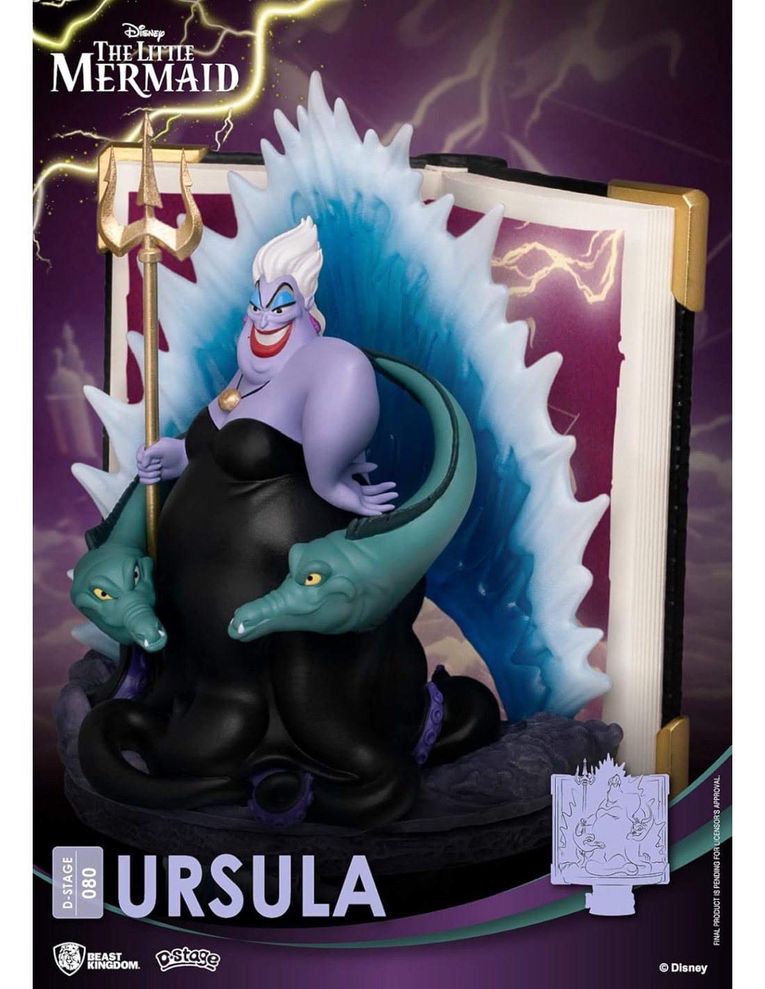 La figura Beast Kingdom Story Book Diorama Úrsula DS-080 es una representación meticulosamente detallada de una de las villanas más memorables del universo Disney. Inspirada en la película clásica La Sirenita, esta pieza muestra a Úrsula en todo su esplendor, acompañada por sus fieles anguilas Flotsam y Jetsam, emergiendo de un libro abierto que da vida a la escena.