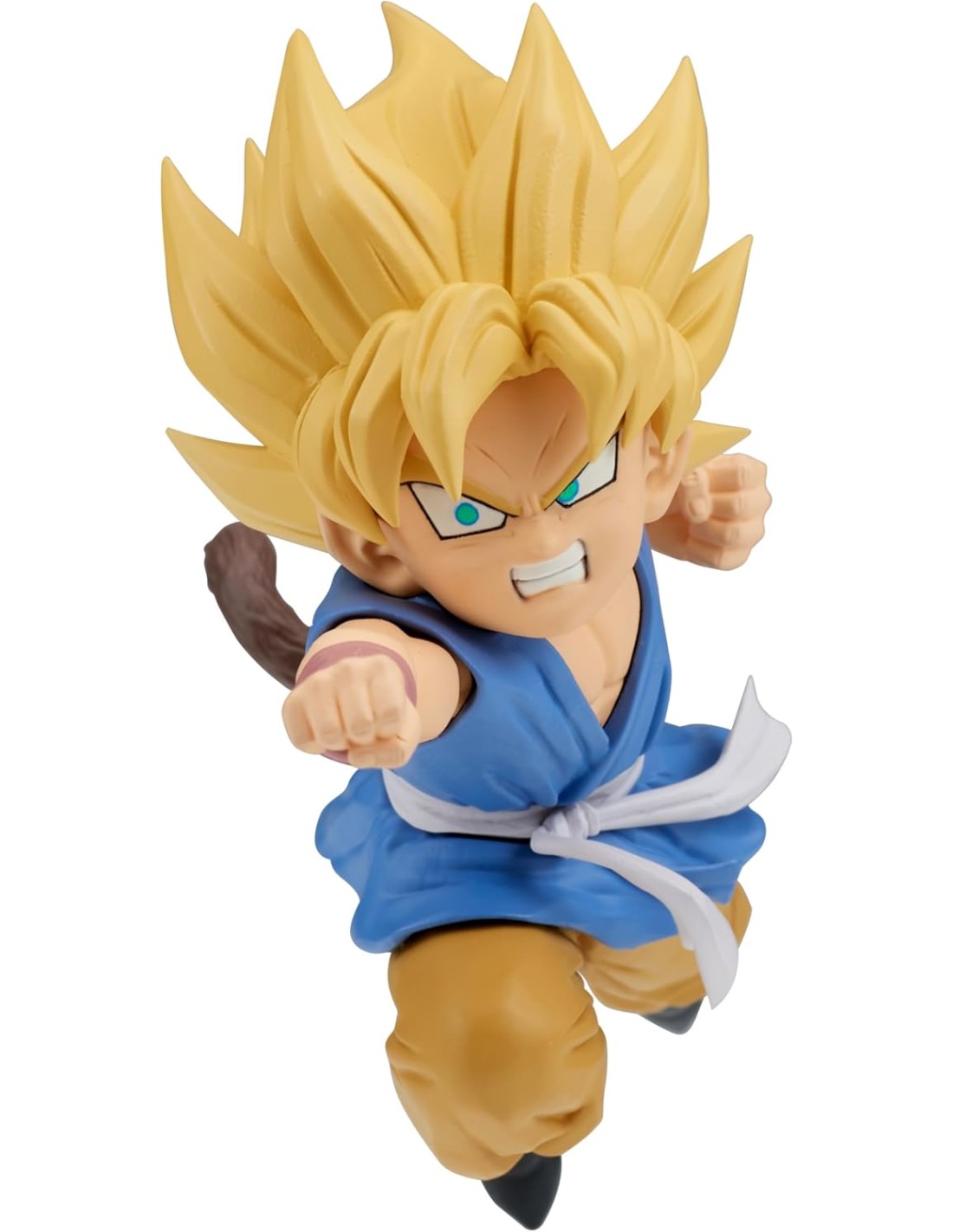La figura Banpresto Match Makers Dragon Ball Son Goku modelo 89642 muestra a Goku en su juventud, tal como aparece en el 22º Torneo de Artes Marciales de Dragon Ball. Esta figura destaca al personaje vistiendo su característico atuendo azul oscuro sin mangas, cinturón rojo, muñequeras rojas y su inconfundible bastón sagrado colgado a la espalda. Con una altura aproximada de 11 cm, la figura presenta a Goku en una pose de combate, con su expresión decidida y lista para enfrentarse a Ten Shin Han, o cualquier rival de aquella etapa clásica de la serie. La línea Match Makers se especializa en capturar personajes en escenas de duelo, y los detalles de escultura —como las arrugas de la ropa y la textura del cabello— ofrecen gran fidelidad al diseño original de Akira Toriyama. Ideal para coleccionistas que aprecian la época inicial de Dragon Ball y las legendarias batallas del Torneo.
