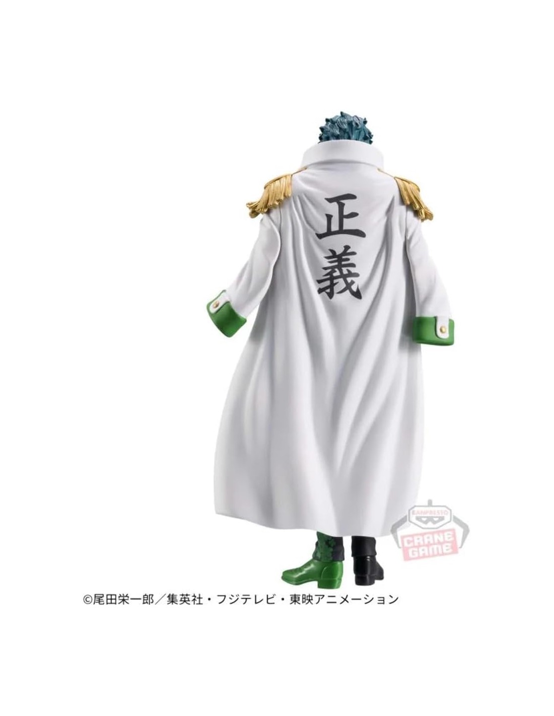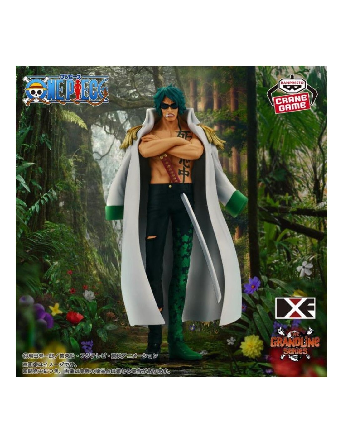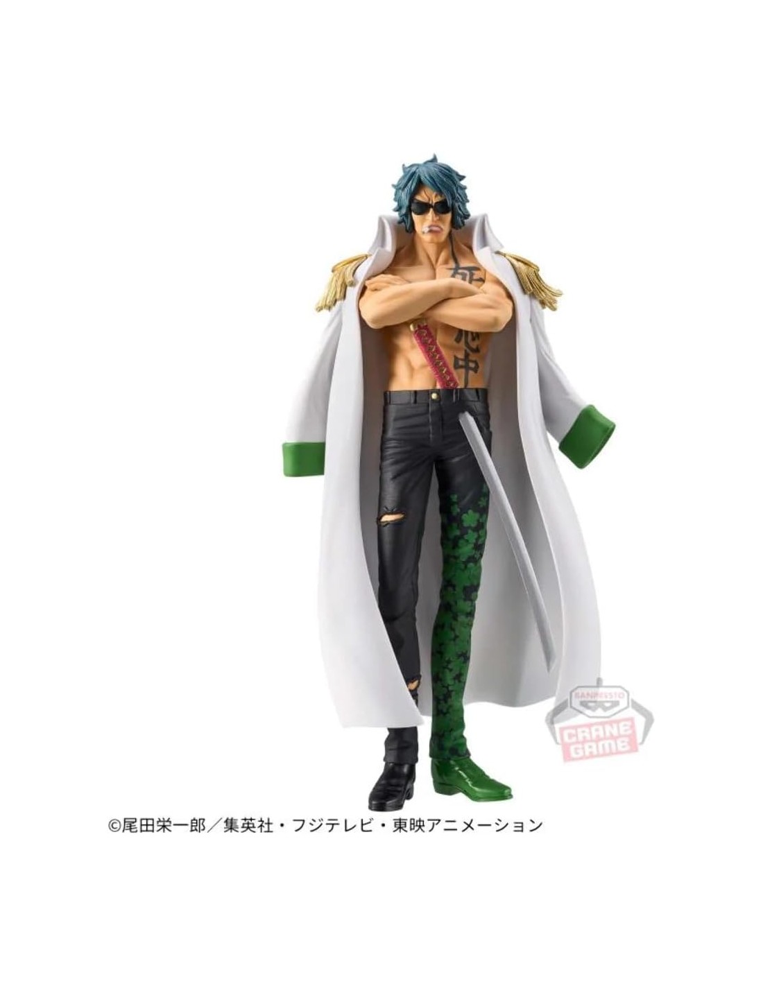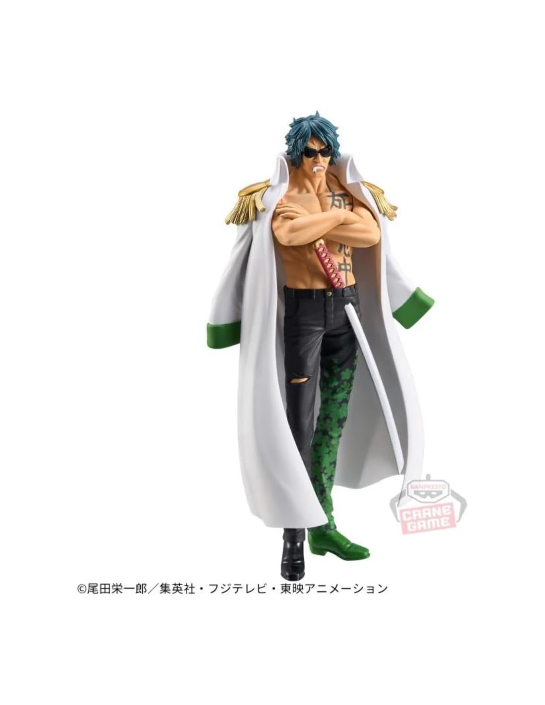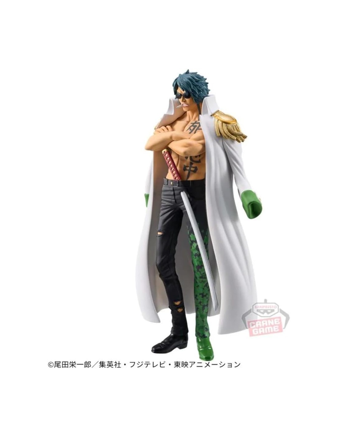 La figura Banpresto One Piece DXF The Grandline Series Extra Aramaki modelo 89114 presenta con gran detalle al misterioso almirante Ryokugyu. Con una altura aproximada de 17 cm, esta pieza fabricada en PVC de alta calidad destaca por su esculpido minucioso y pintura precisa. Aramaki aparece con su inconfundible chaqueta de la Marina sobre los hombros, gafas oscuras y una actitud serena pero dominante, fiel a su introducción en el arco de Wano de One Piece. Esta figura es perfecta para coleccionistas y aficionados que deseen ampliar su alineación de altos mandos de la Marina, capturando tanto la esencia como el diseño único de este poderoso personaje.