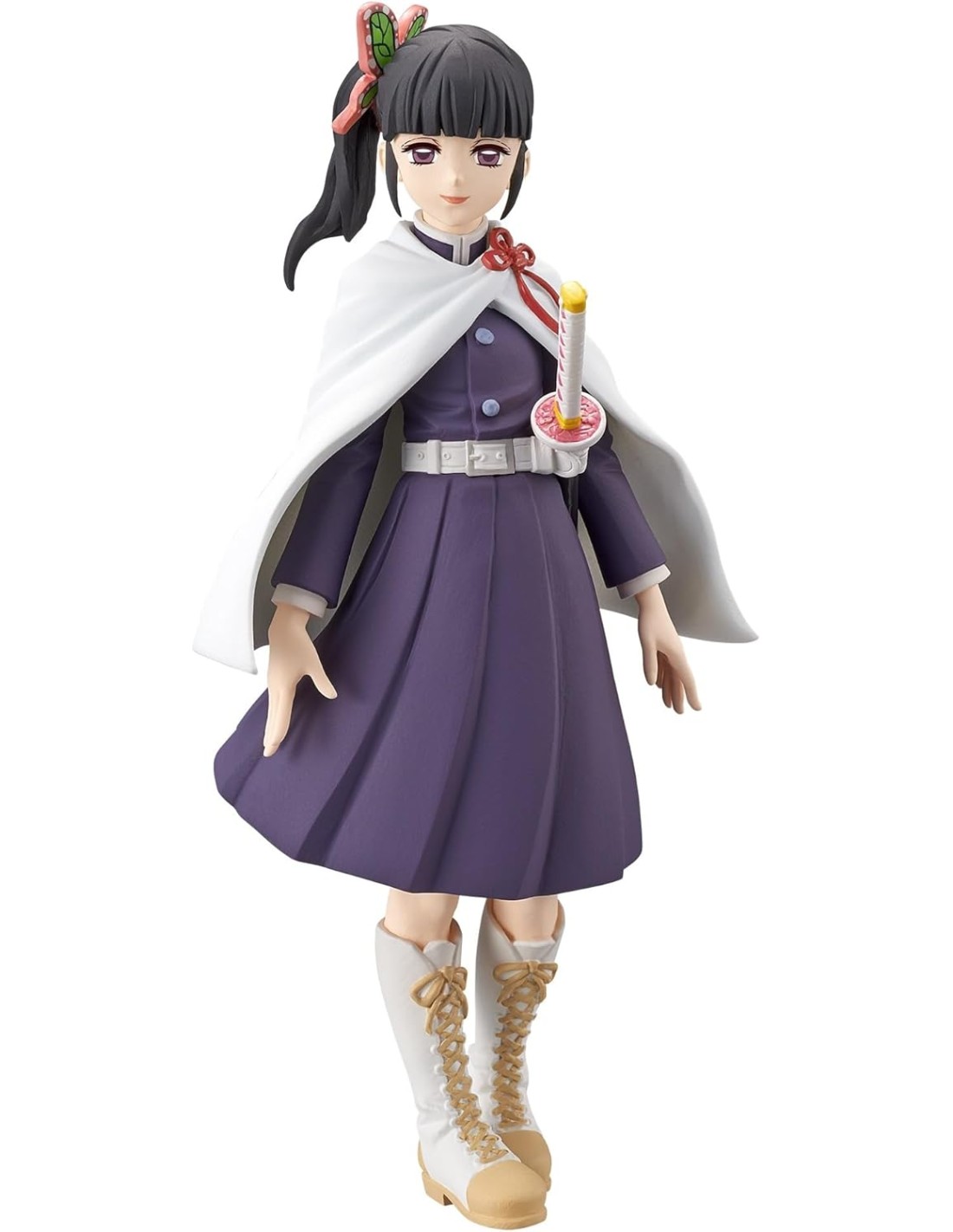 La figura Banpresto Demon Slayer Kimetsu no Yaiba Kanao Tsuyuri modelo 16206 captura la esencia serena y decidida de Kanao, una de las cazadoras de demonios más habilidosas de la serie. Con una altura aproximada de 15-17 cm, la figura presenta a Kanao con su característico uniforme del Cuerpo de Exterminio de Demonios, acompañado de su capa blanca y su espada nichirin enfundada. Su cabello oscuro atado en una coleta baja con un lazo rosa y su mariposa ornamentada son reproducidos con gran detalle. La pose elegante, con la mirada suave pero determinada, resalta su carácter equilibrado y reservado. Fabricada con materiales resistentes y acabados de alta calidad, esta figura destaca por la precisión en los detalles de la vestimenta, las texturas y los colores pastel sutiles que reflejan la estética refinada de la serie Kimetsu no Yaiba. Es una pieza ideal tanto para fans de Kanao como para coleccionistas que buscan ampliar su línea de personajes femeninos del anime.