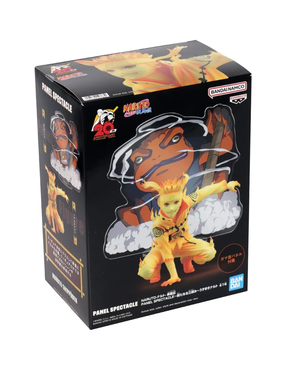 La figura Banpresto Naruto Shippuden Naruto Uzumaki Panel Spectacle Modelo 19783 representa a Naruto en una de sus poses más icónicas, listo para lanzar un Rasengan. Con un esculpido detallado y colores vivos, la figura captura la esencia del protagonista de Naruto Shippuden, incluyendo su característico traje naranja y azul, su bandana de Konoha y su mirada decidida. La figura mide aproximadamente 13 cm y está fabricada en PVC de alta calidad. Incluye una base para exposición, lo que la convierte en una pieza perfecta para coleccionistas y fans del anime.