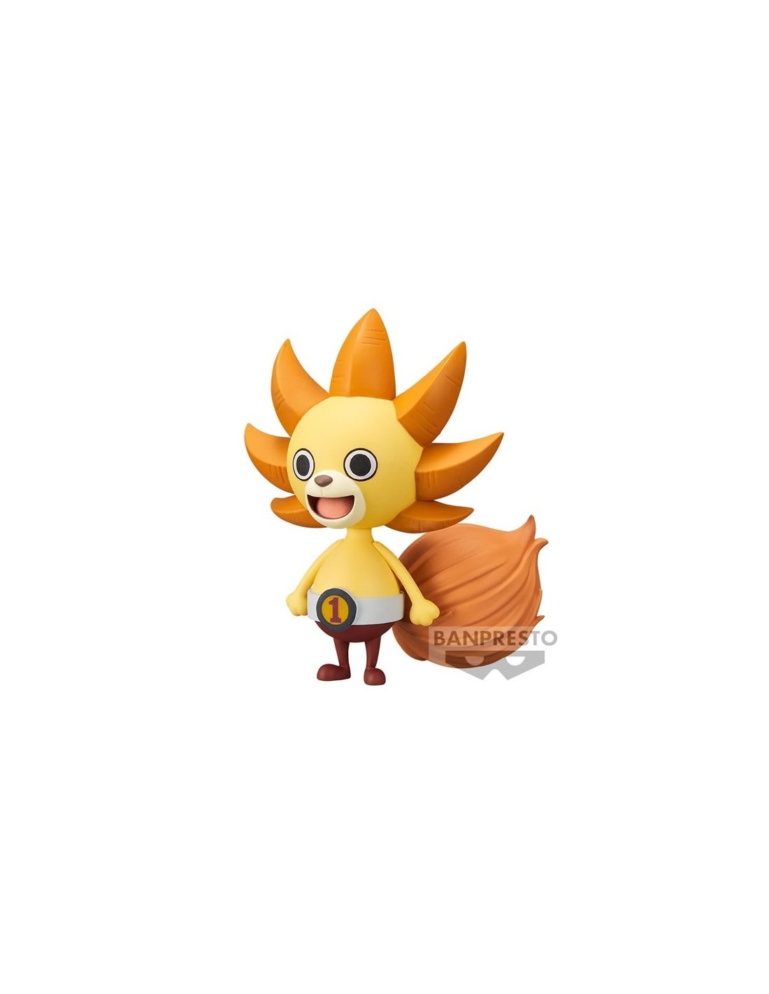 La figura Banpresto One Piece Red Sunny-Kun Vol.12 The Grandline Men Modelo 19063 captura a Sunny-Kun, la entrañable y carismática personificación del barco Thousand Sunny, tal como aparece en One Piece Film: Red. Con su expresión alegre, su melena en forma de sol y su cinturón con el número “1”, esta figura transmite simpatía y diversión. Fabricada en PVC de alta calidad y con una altura aproximada de 11 cm, es perfecta para cualquier colección de One Piece y para los fans que buscan un artículo único y representativo de la saga.