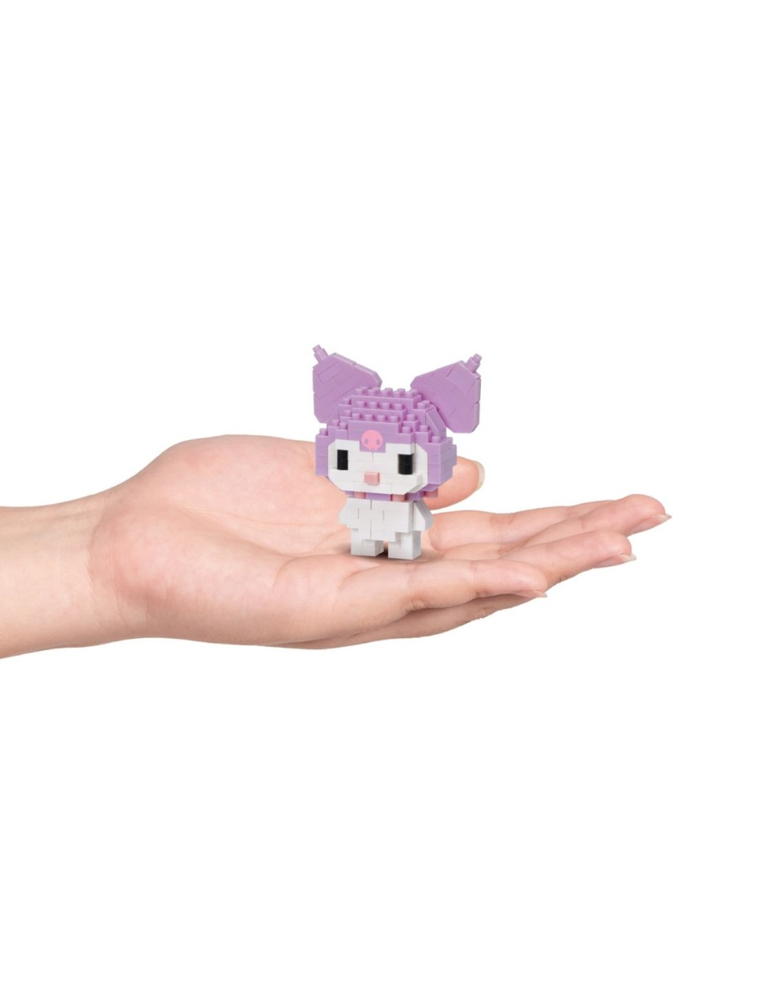 La Figura Bandai Nanoblock Kuromi Modelo NBH_179 es un encantador set de microbloques que permite recrear a uno de los personajes más populares y traviesos del mundo Sanrio. Con su distintivo gorro negro con calavera rosa, orejas puntiagudas y expresión juguetona, Kuromi cobra vida en un formato compacto, perfecto para los amantes de las construcciones detalladas.