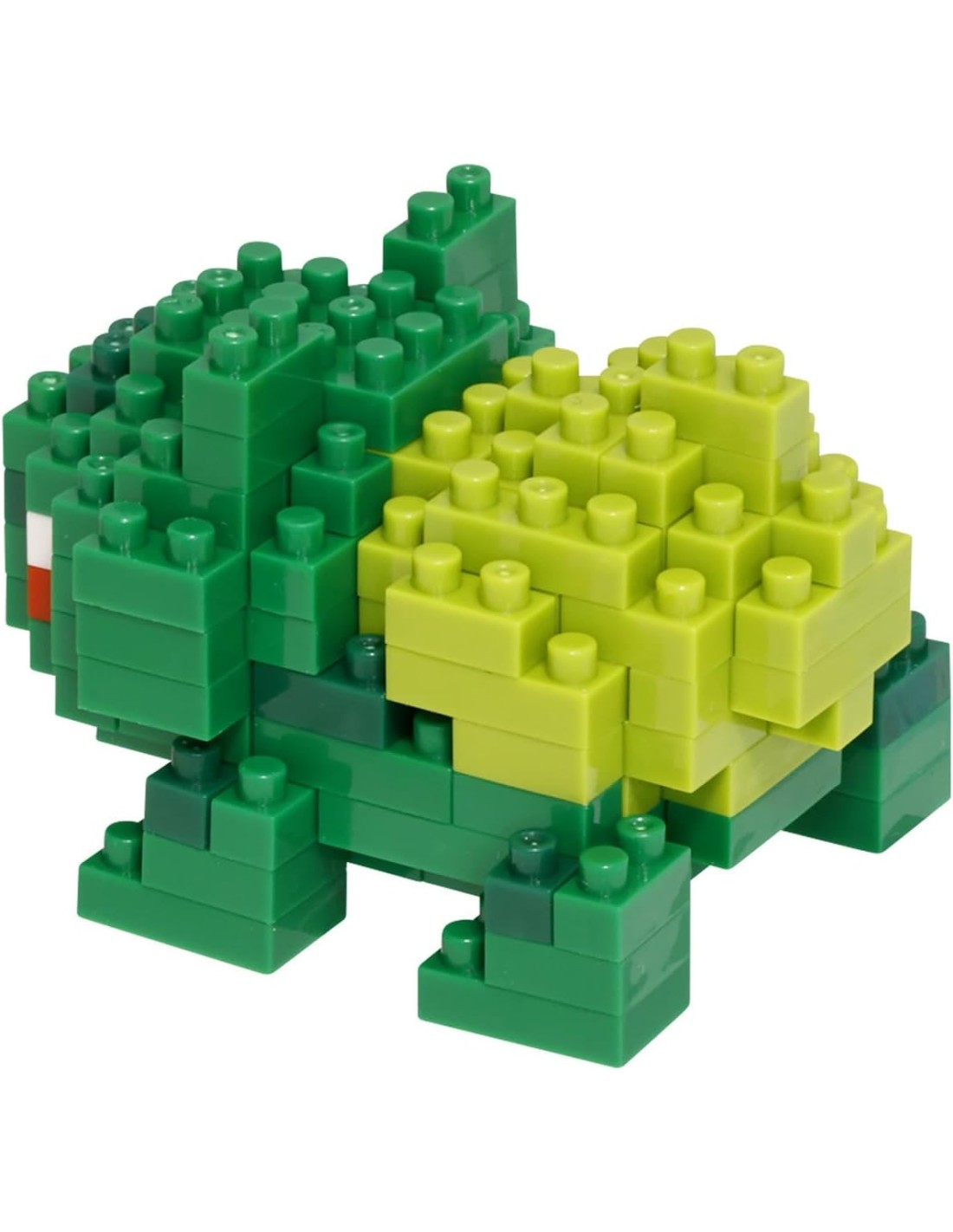 La figura Nanoblock de Bulbasaur (modelo NBPM003) es un set de construcción de microbloques diseñado para recrear al adorable Pokémon de tipo planta/veneno en su versión clásica de 8 bits. Con un diseño compacto y detalles bien logrados, este modelo es ideal para coleccionistas y fanáticos de Pokémon que disfrutan del armado de figuras.
