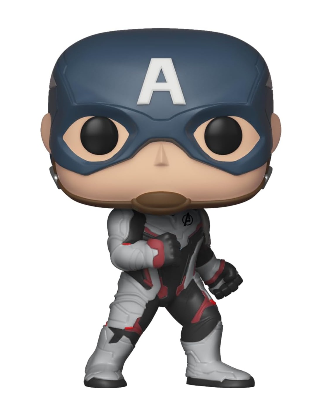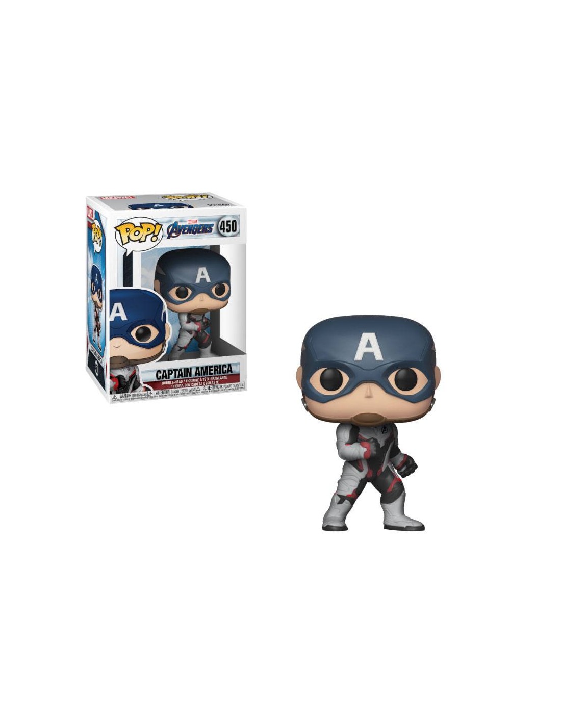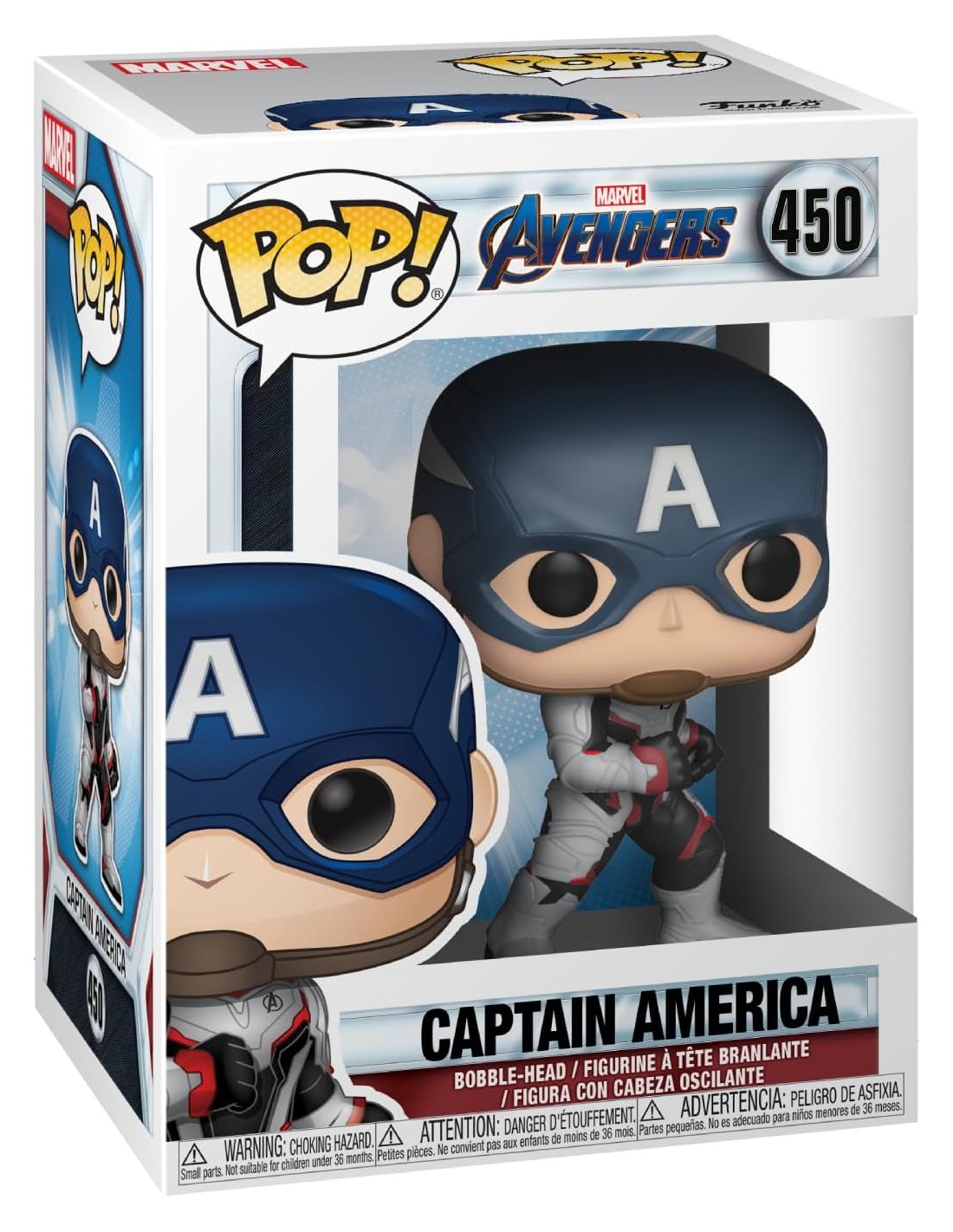 La figura Funko Pop! Marvel Endgame Capitán América Modelo 450 | 36661 representa a Steve Rogers con el traje blanco, negro y rojo diseñado específicamente para los viajes cuánticos en Avengers: Endgame. Fabricada en vinilo y con una altura aproximada de 9 cm, esta figura muestra a Capitán América sin escudo, con una pose decidida y listo para la misión de recuperar las Gemas del Infinito.