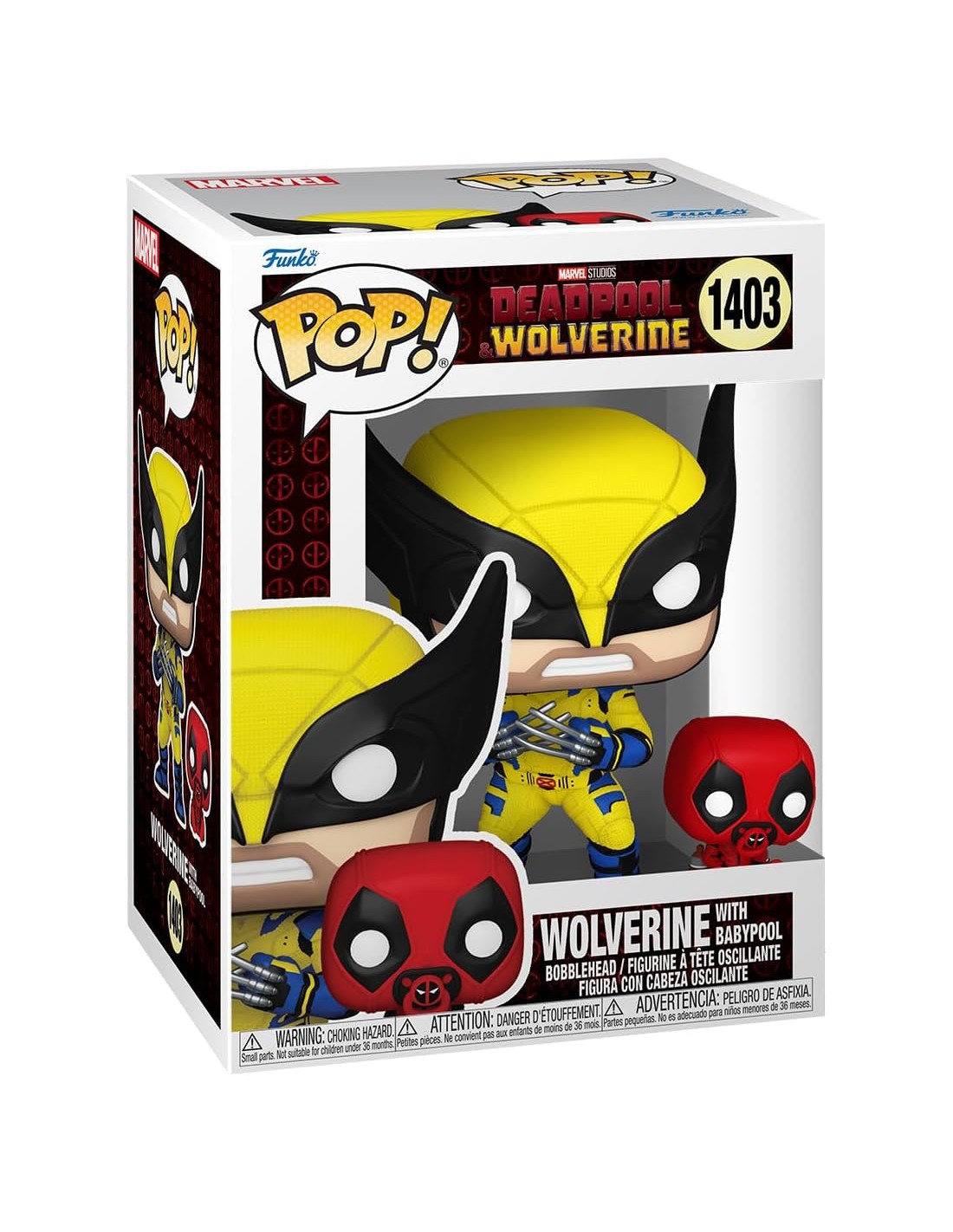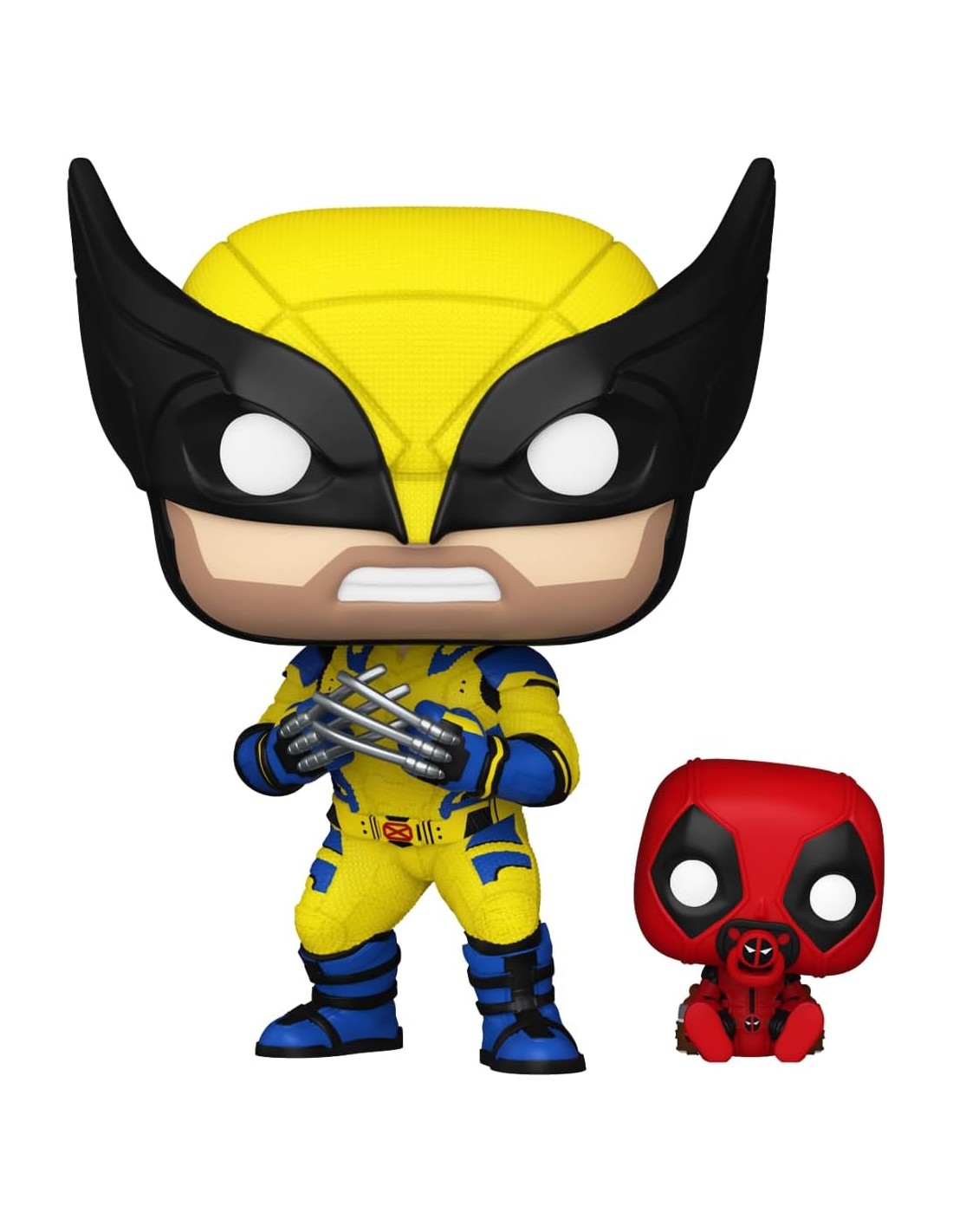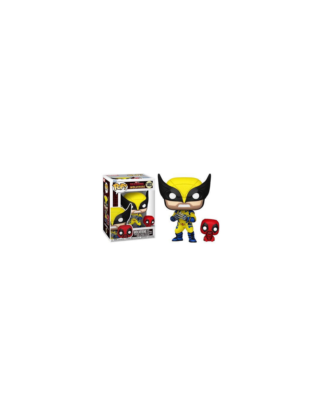 La figura Funko Pop! Marvel Deadpool y Lobezno modelo 1403 | 82382 es un set que combina a dos de los personajes más emblemáticos del universo X-Men: Lobezno y Deadpool. Lobezno aparece con su clásico traje amarillo y azul, con máscara negra, las garras de adamantium completamente desplegadas y una expresión feroz que captura su espíritu indomable. La figura mide aproximadamente 9-10 cm y destaca por el esculpido detallado de la textura del traje y los contrastes de color vibrante. Junto a él, se incluye una figura miniatura de Deadpool (alrededor de 4 cm), con su inconfundible traje rojo y negro y en una divertida pose sentada.