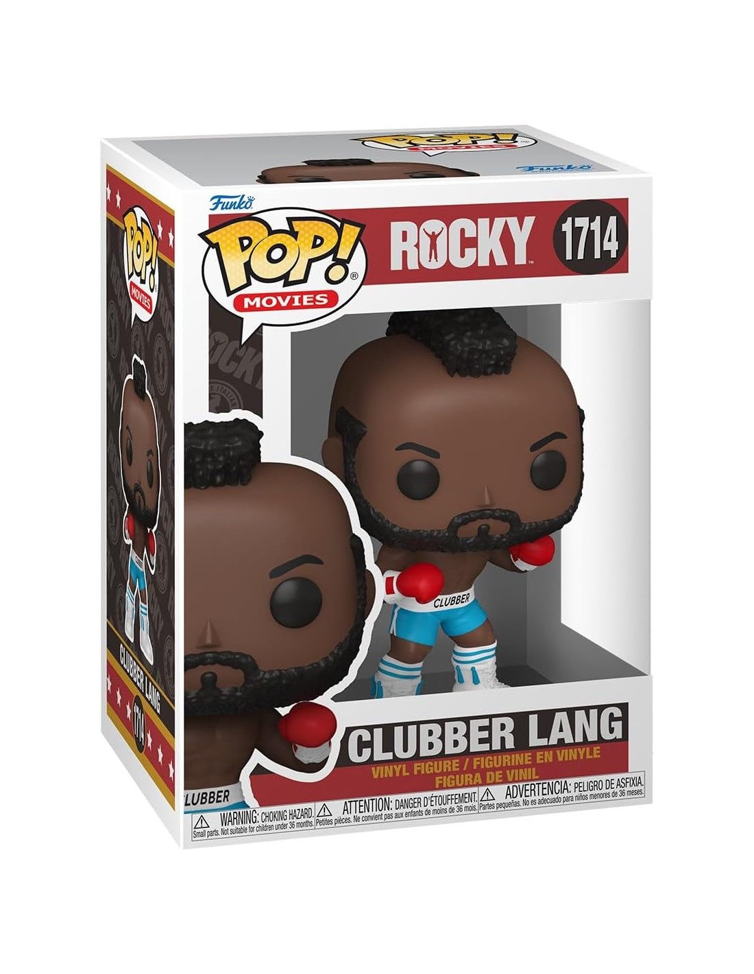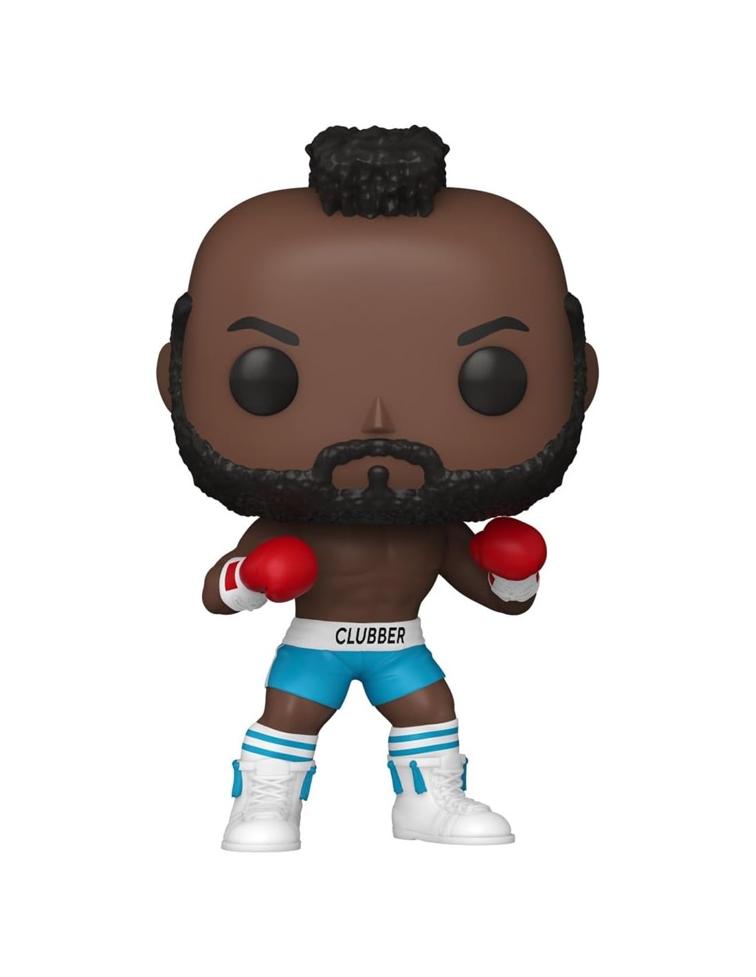 La figura Funko Pop! Películas Rocky Clubber Lang Modelo 1714 | 83547 representa a Clubber Lang, el carismático y feroz boxeador interpretado por Mr. T en Rocky III. Fabricada en vinilo y con una altura aproximada de 9 cm, esta figura muestra a Clubber en su atuendo de combate: pantalones cortos azules, guantes de box rojo y su característico peinado mohicano con patillas.