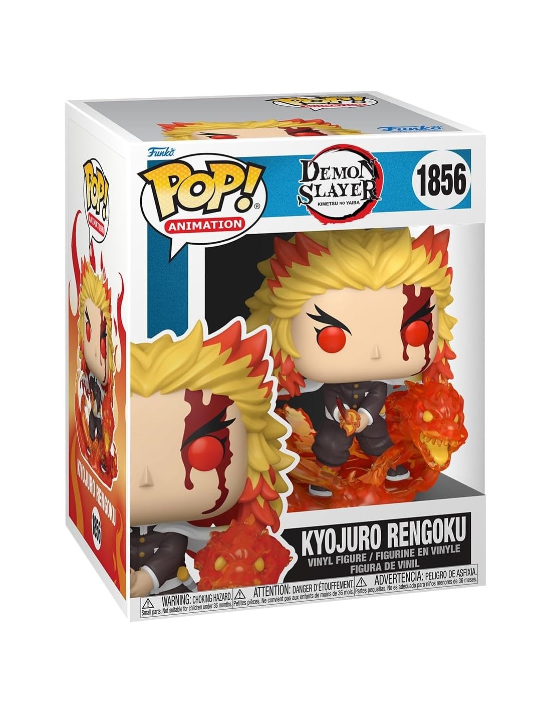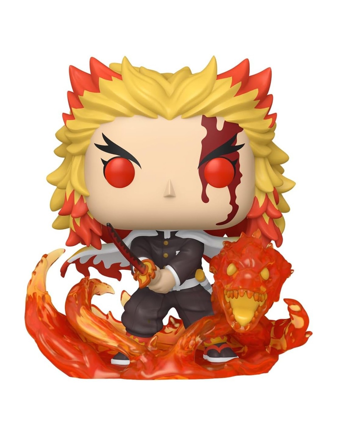 La figura Funko Pop! Demon Slayer Kyojuro Rengoku Modelo 1856 | 85001 representa al carismático Pilar de la Llama (Flame Hashira) del Cuerpo de Exterminio de Demonios. Con su inconfundible cabello amarillo con puntas rojas, su uniforme negro de cazador de demonios y su llamativa capa que simula llamas, Rengoku sostiene su katana nichirin, lista para el combate.