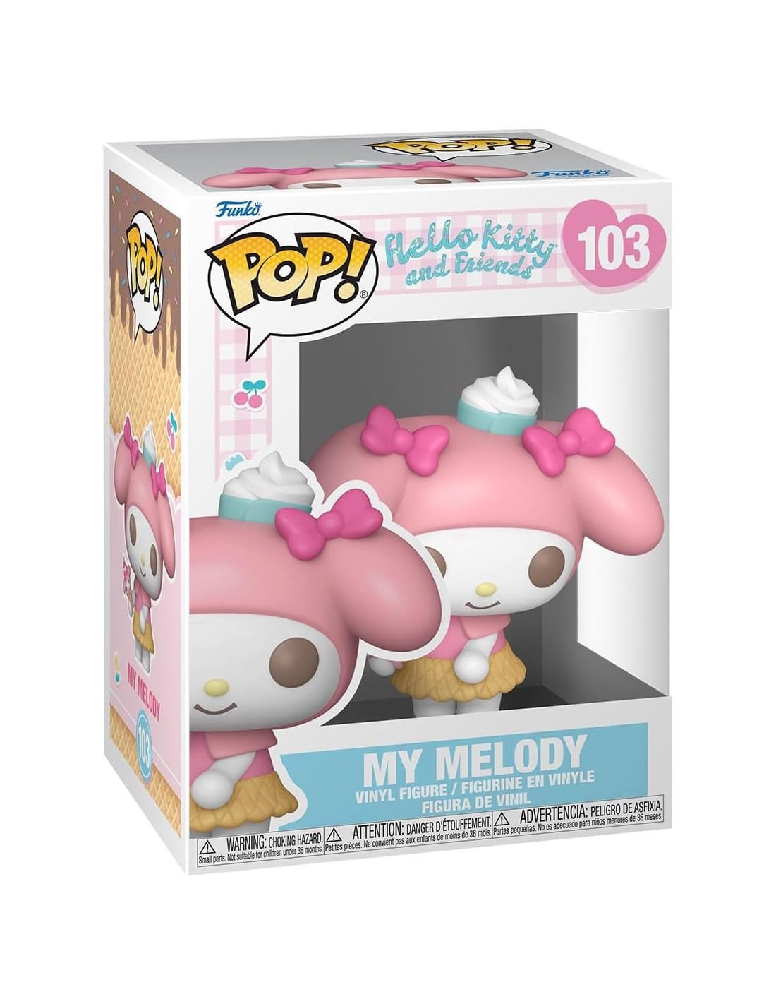 La figura Funko Pop! Hello Kitty y Amigos My Melody Modelo 103 | 83696 presenta a uno de los personajes más adorados del universo Sanrio. My Melody luce su clásica capucha rosa, adornada con unos lazos del mismo color, que cubre sus largas orejas. Con su expresión amable y su cuerpo en tonos blancos, esta figura captura perfectamente la ternura y la bondad que caracterizan a My Melody.