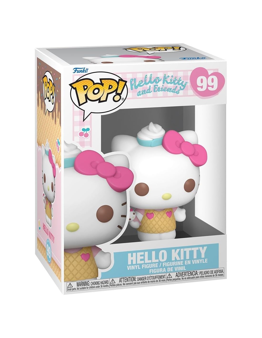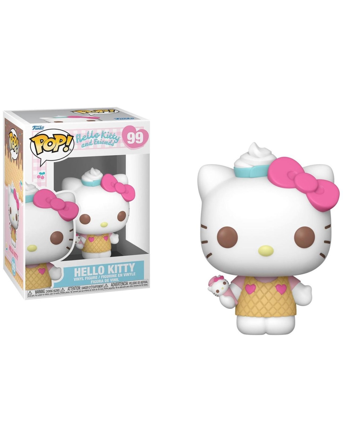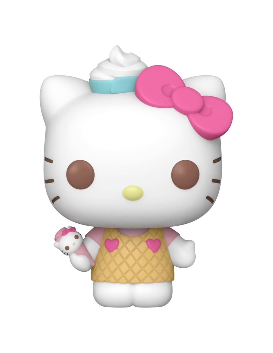 La figura Funko Pop! Hello Kitty y Amigos Hello Kitty Modelo 99 | 83694 presenta a la icónica gatita de Sanrio con un toque muy dulce. Su vestido, que imita la galleta de un helado, le da un aire juguetón y tierno, mientras que una pequeña tarta blanca adorna su cabeza, acentuando aún más su aspecto adorable. Con su característico lazo, Hello Kitty irradia simpatía y calidez, y esta versión única de la figura la convierte en una pieza imprescindible para los coleccionistas.