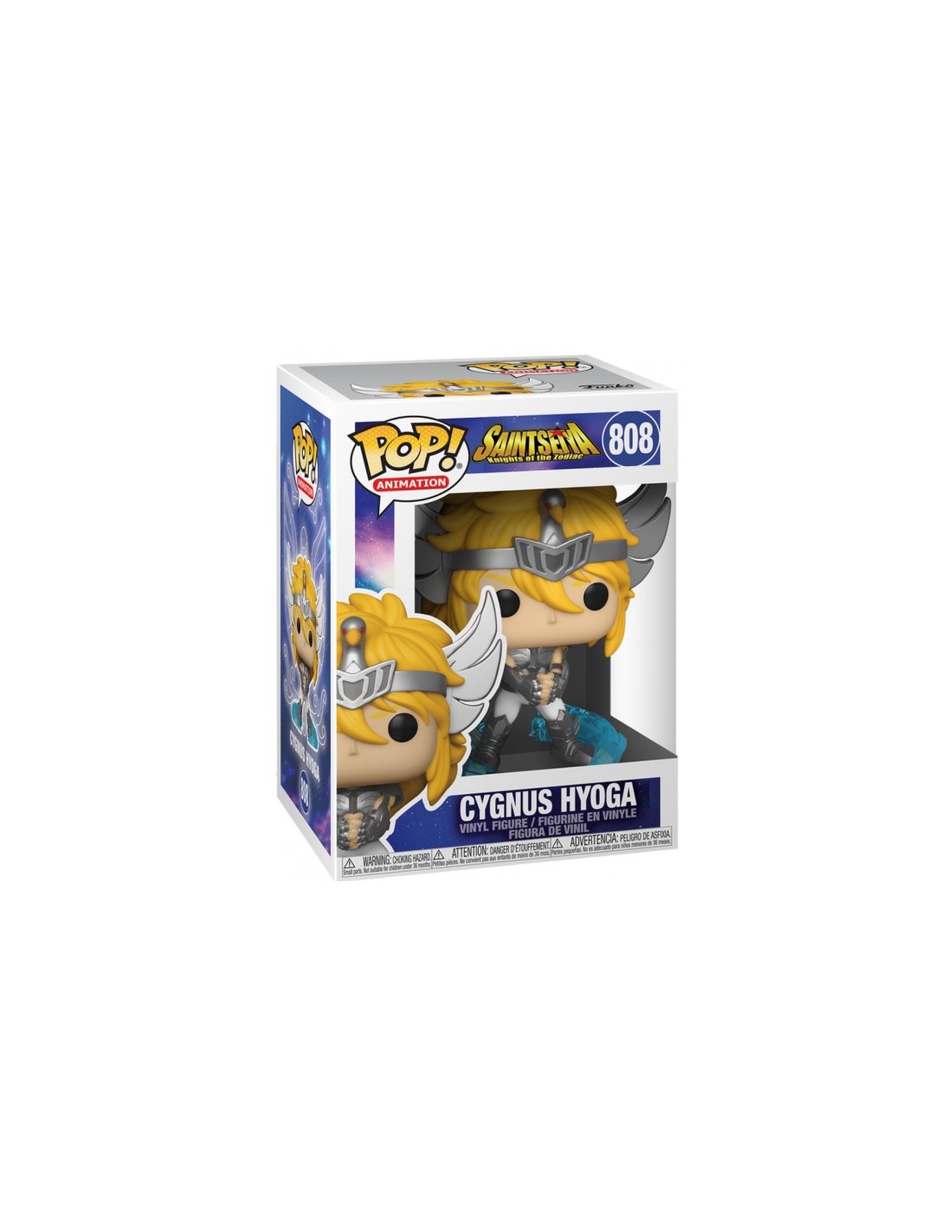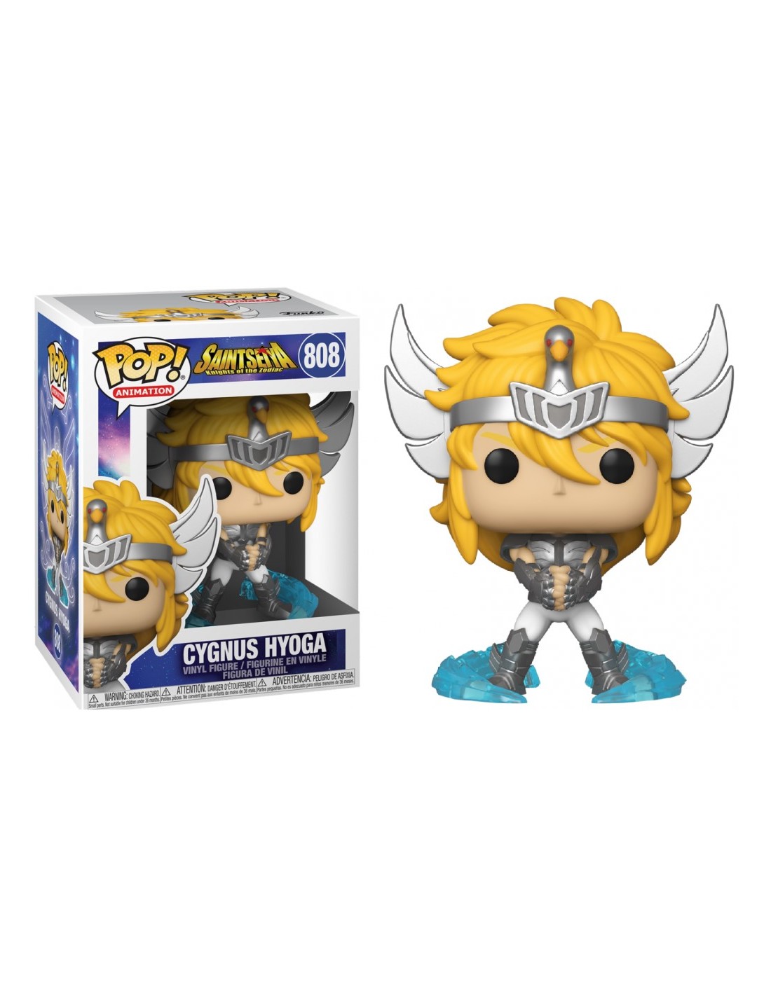 La figura Funko Pop! Animación Caballeros del Zodiaco Saint Seiya Cygnus Hyoga Modelo 808 captura la esencia del caballero del hielo con una representación estilizada y detallada. Con su inconfundible armadura plateada del Cisne, cabello rubio y expresión serena, esta figura rinde homenaje a uno de los guerreros más icónicos del anime.