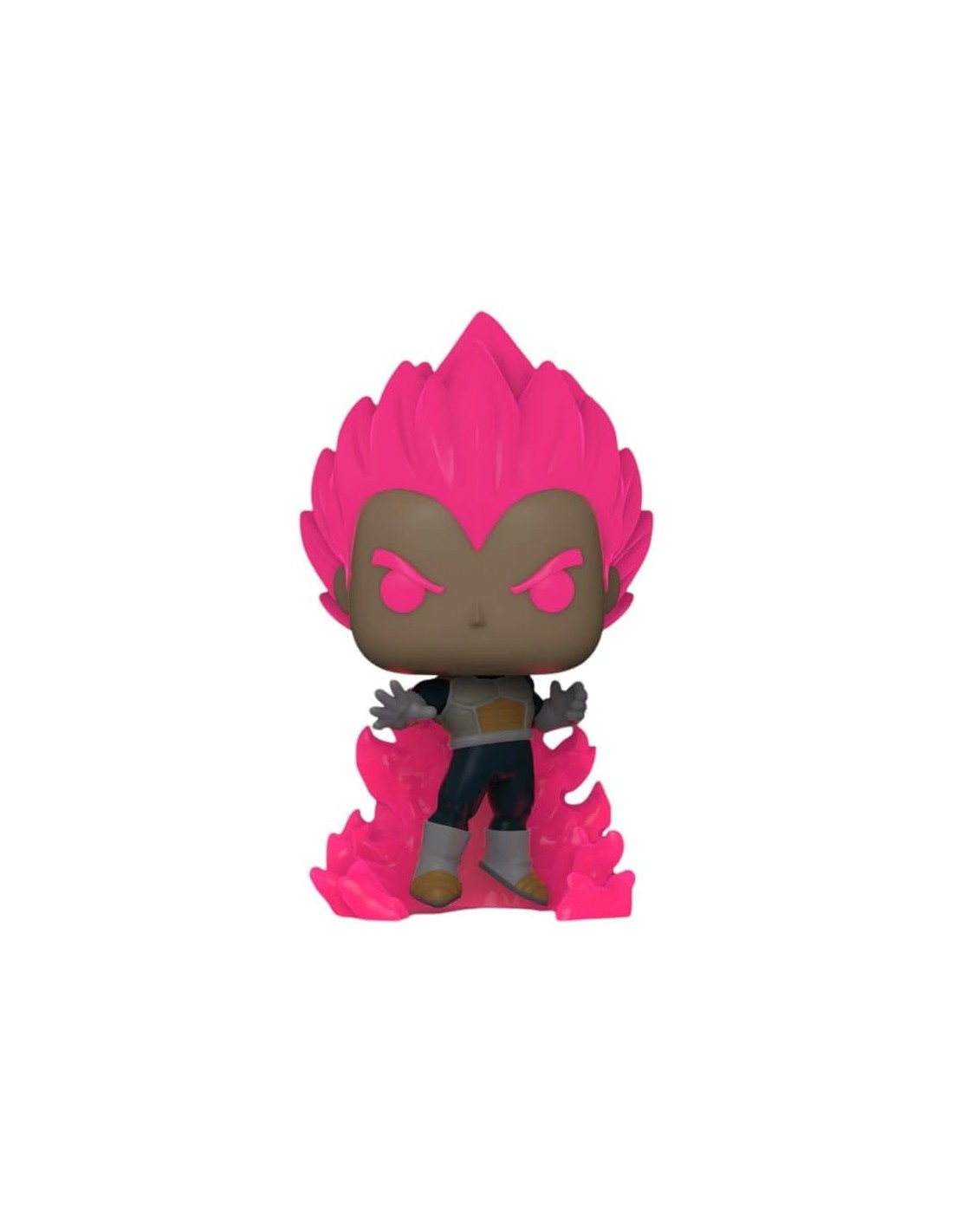 La figura Funko Pop! Dragon Ball Super Saiyan God Vegeta #1868 Edición Especial Chase presenta a Vegeta en su forma de Super Saiyan God con un acabado que brilla en la oscuridad, ideal para coleccionistas y fans de la saga.