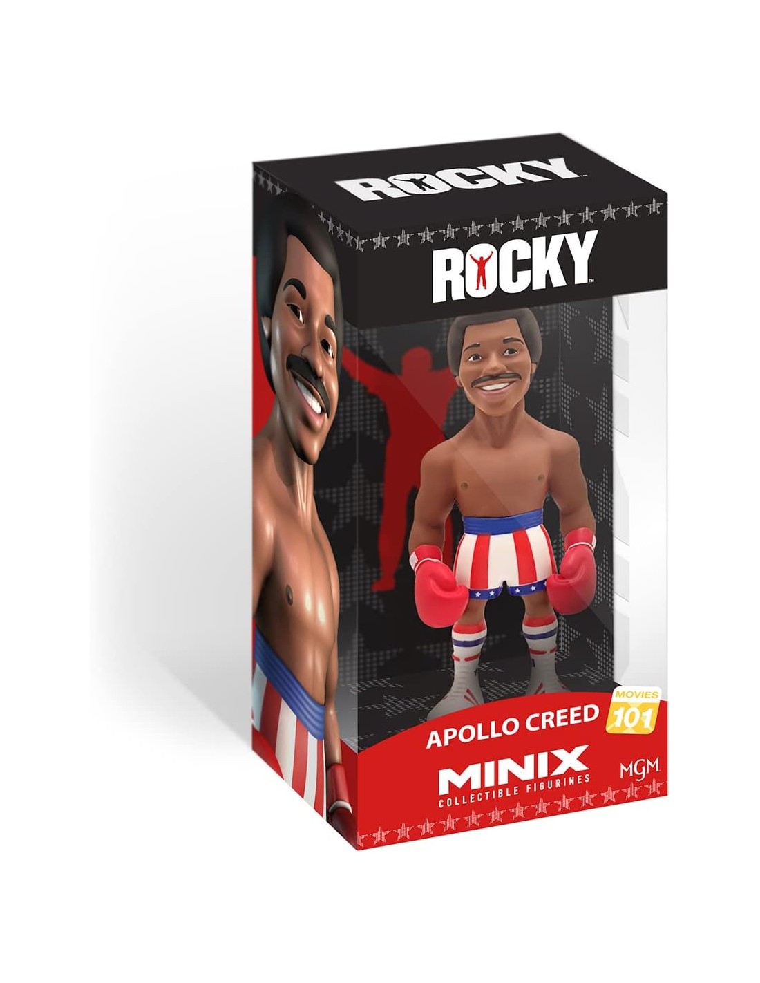 La figura Minix Apollo Creed modelo 101 rinde homenaje a uno de los personajes más icónicos del cine deportivo: el orgulloso, carismático y poderoso Apollo Creed, rival y amigo de Rocky Balboa. Esta figura coleccionable presenta un diseño estilizado con una altura aproximada de 12 cm, destacando sus guantes rojos, pantalones con la bandera de EE. UU. y la inconfundible actitud desafiante que lo caracteriza.