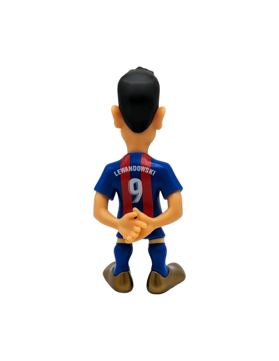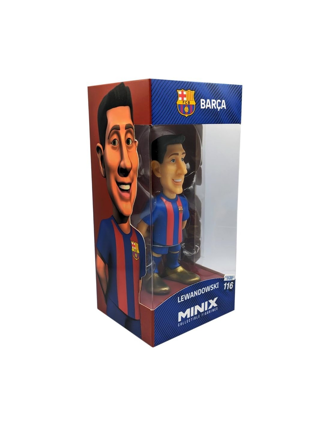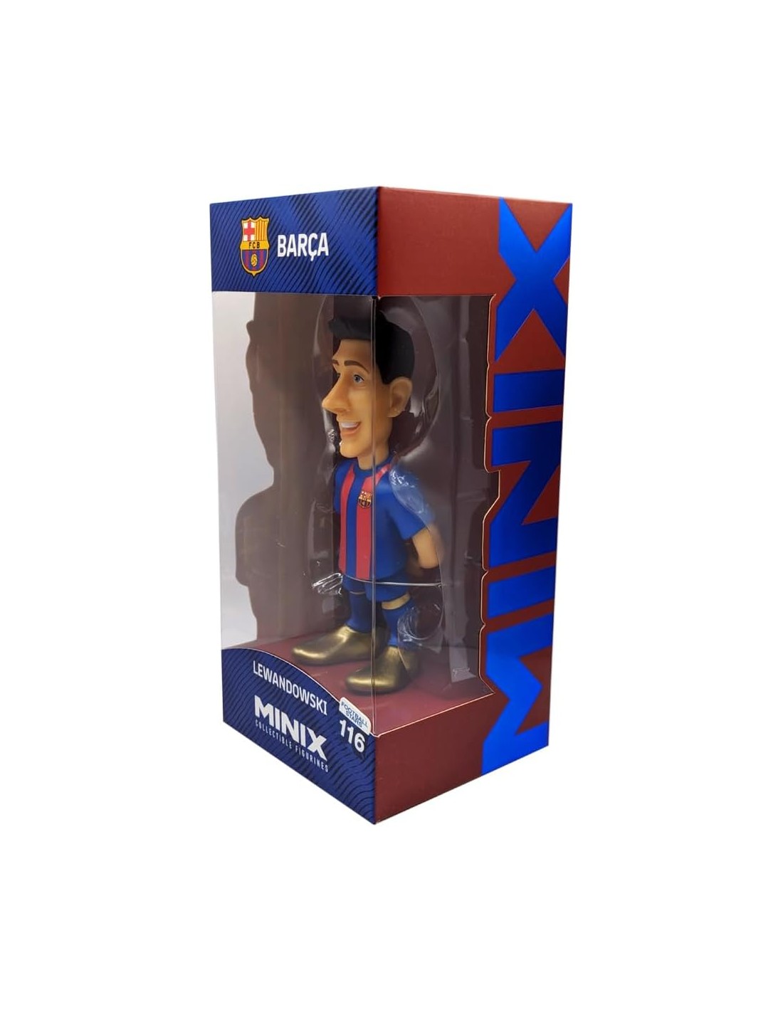 La figura Minix Barça Lewandowski modelo 116 captura al delantero polaco en su etapa con el FC Barcelona, luciendo con orgullo el uniforme blaugrana. Con una altura aproximada de 12 cm, esta figura ofrece un diseño estilizado y caricaturesco que refleja la fuerza, precisión y carácter goleador de uno de los máximos artilleros del fútbol europeo.