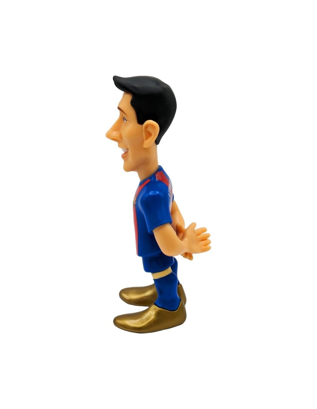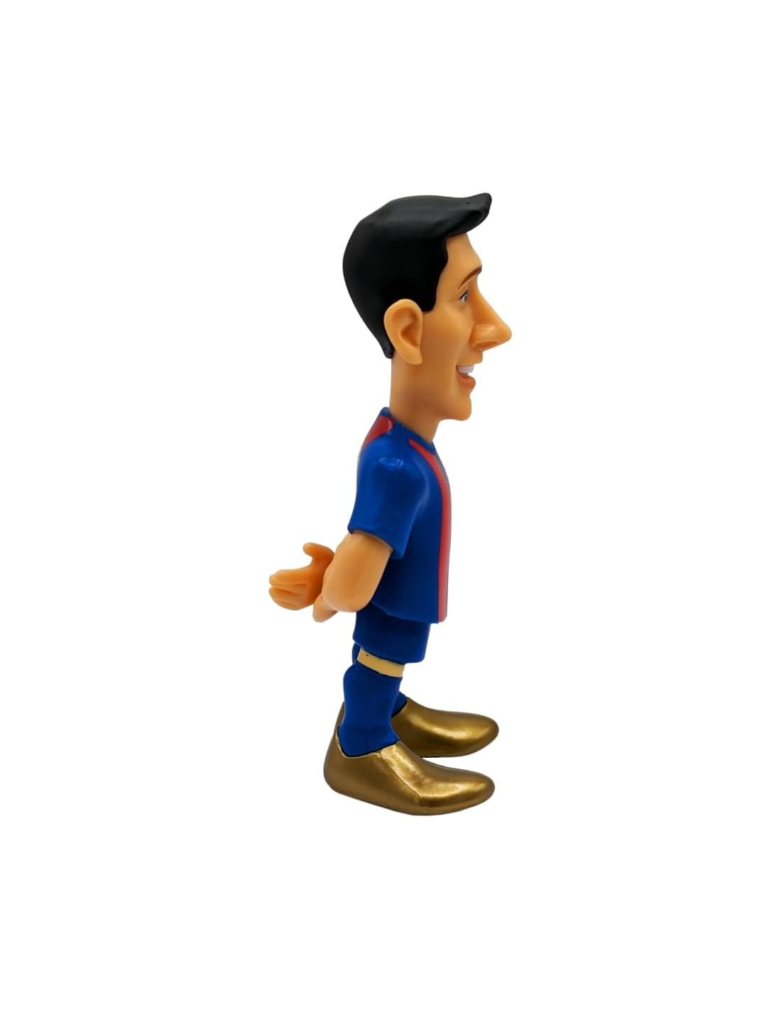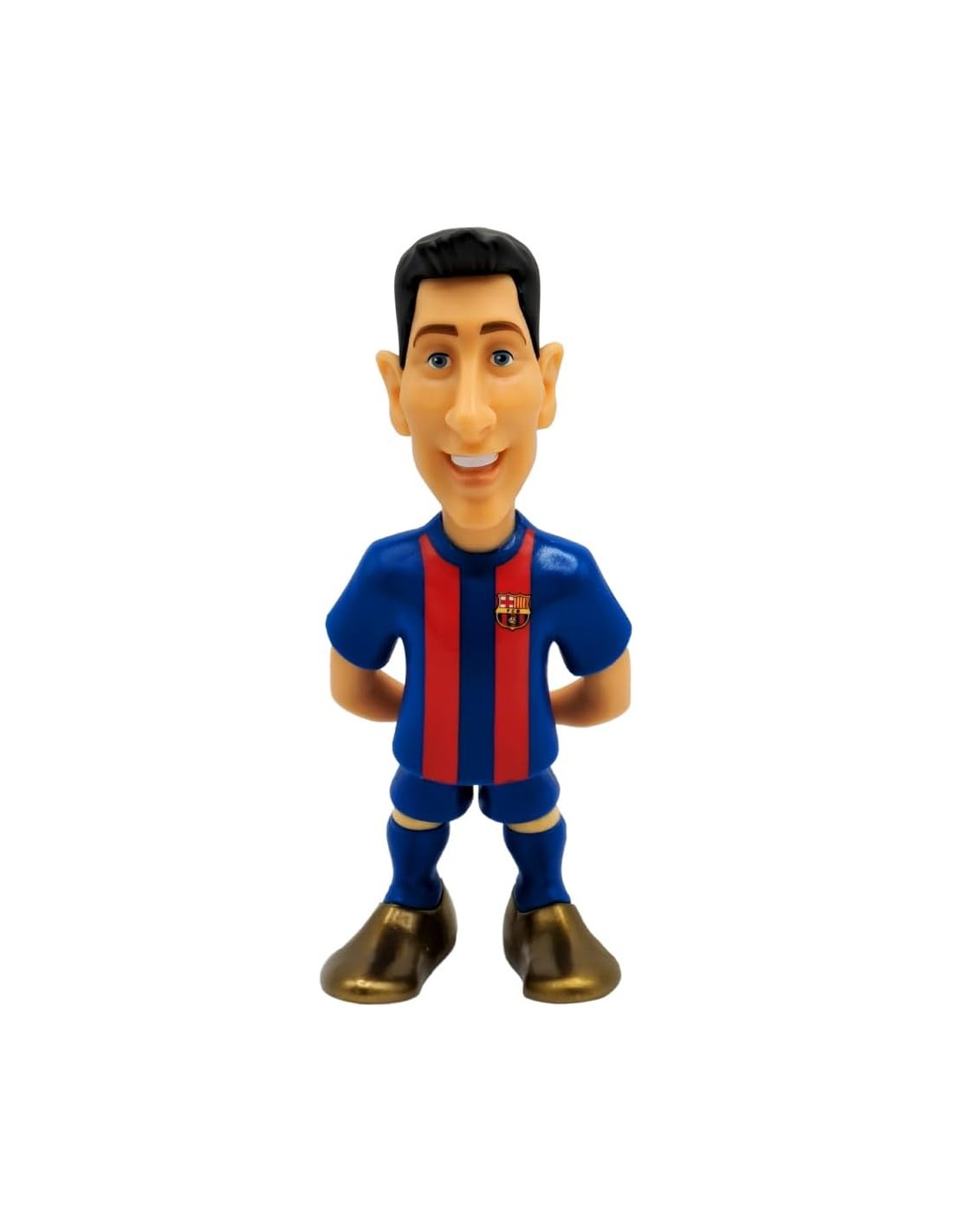 La figura Minix Barça Lewandowski modelo 116 captura al delantero polaco en su etapa con el FC Barcelona, luciendo con orgullo el uniforme blaugrana. Con una altura aproximada de 12 cm, esta figura ofrece un diseño estilizado y caricaturesco que refleja la fuerza, precisión y carácter goleador de uno de los máximos artilleros del fútbol europeo.