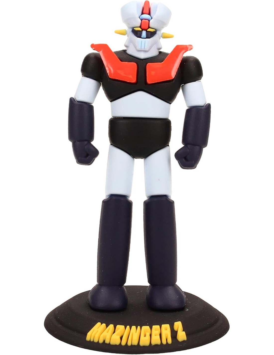 La Mini Figura de goma SD Toys Mazinger Modelo Mazinger Z rinde homenaje a uno de los mechas más icónicos del anime. Con un diseño compacto, ligeramente caricaturesco y fabricada en goma flexible, esta figura representa fielmente los detalles característicos del poderoso robot creado por Go Nagai: su pecho rojo en forma de V, brazos robustos y su clásico casco con cuernos.