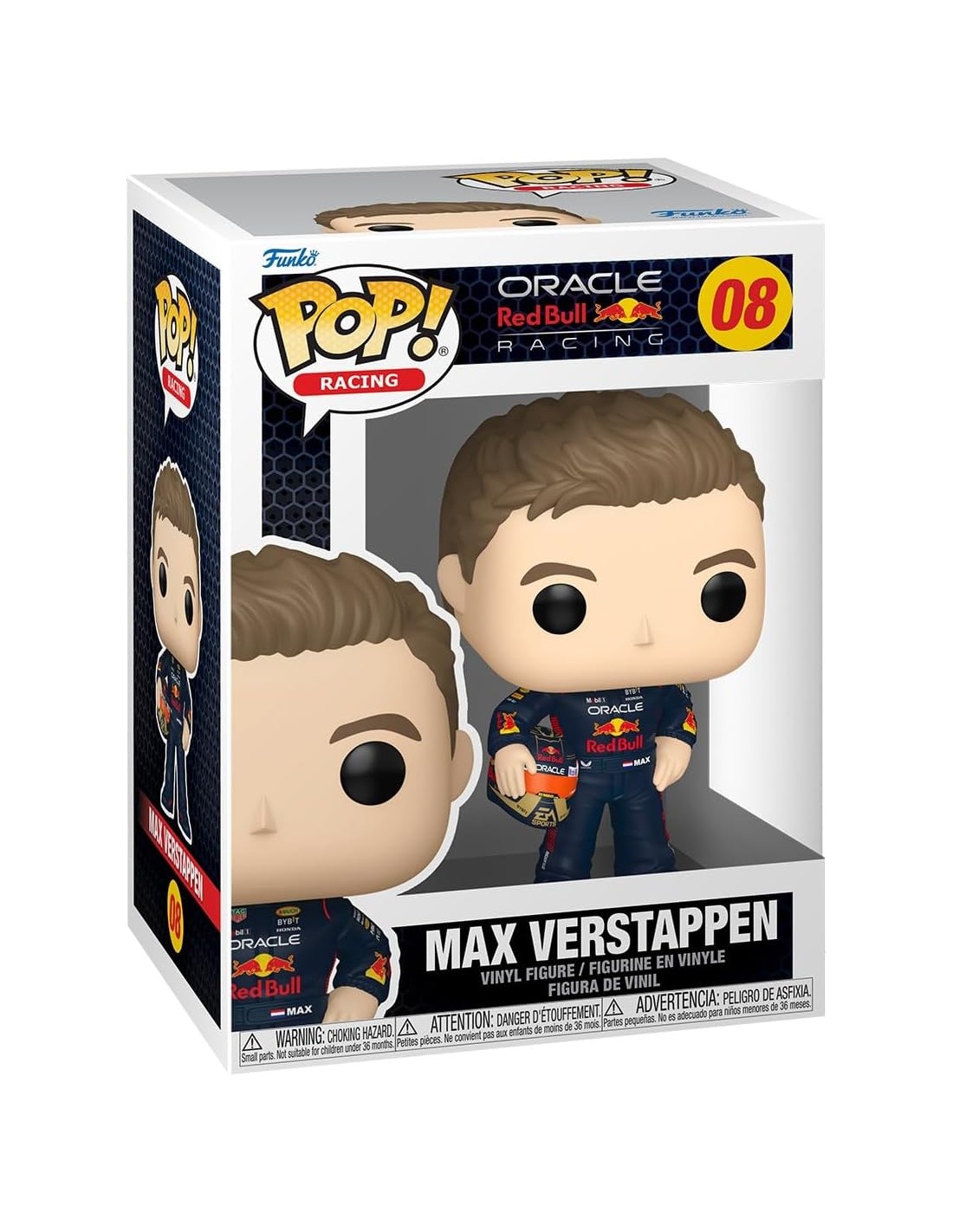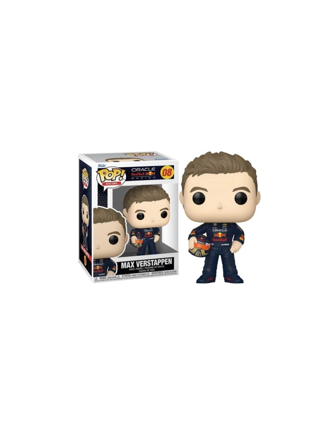 Acelera tu colección con la Figura Funko Pop! Fórmula 1 de Max Verstappen, el carismático y talentoso piloto de Oracle Red Bull Racing. Este modelo 08 de la línea Funko Pop! F1 captura a Verstappen en su indumentaria de piloto, completo con su casco distintivo y el mono de carreras de su escudería, Oracle Red Bull Racing.