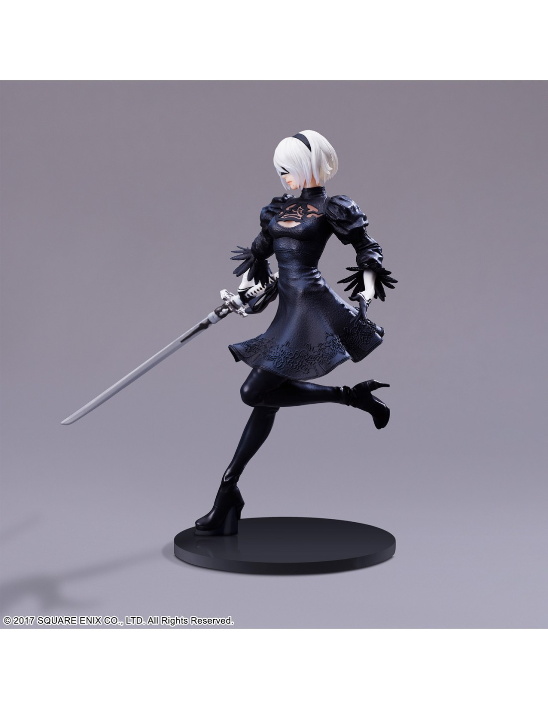 Esta figura de acción representa a YoRHa No.2 Type B, más conocida como 2B, uno de los personajes más emblemáticos de NieR: Automata, en una versión estilizada de la línea Form-ISM de Square Enix. La figura ofrece una reinterpretación artística que resalta la estética elegante y melancólica de 2B, con proporciones únicas y un acabado refinado que combina lo clásico con lo vanguardista.