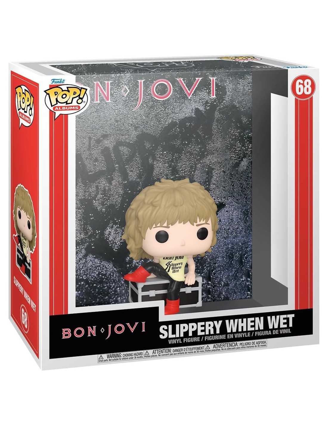 La Figura Funko Pop! Albums Bon Jovi Slippery When Wet celebra uno de los discos más exitosos del rock de los años 80. Este lanzamiento de la línea Pop! Albums combina una figura de Jon Bon Jovi en estilo Funko, junto a la portada del álbum "Slippery When Wet" en un estuche rígido transparente, ideal para exhibir.